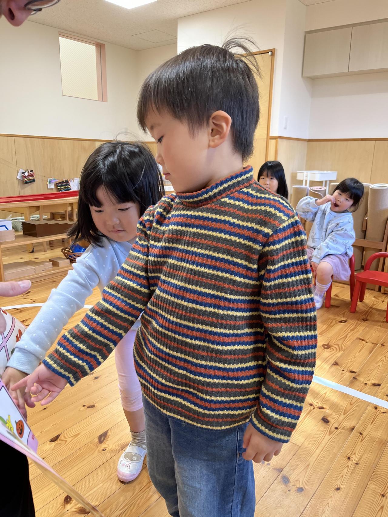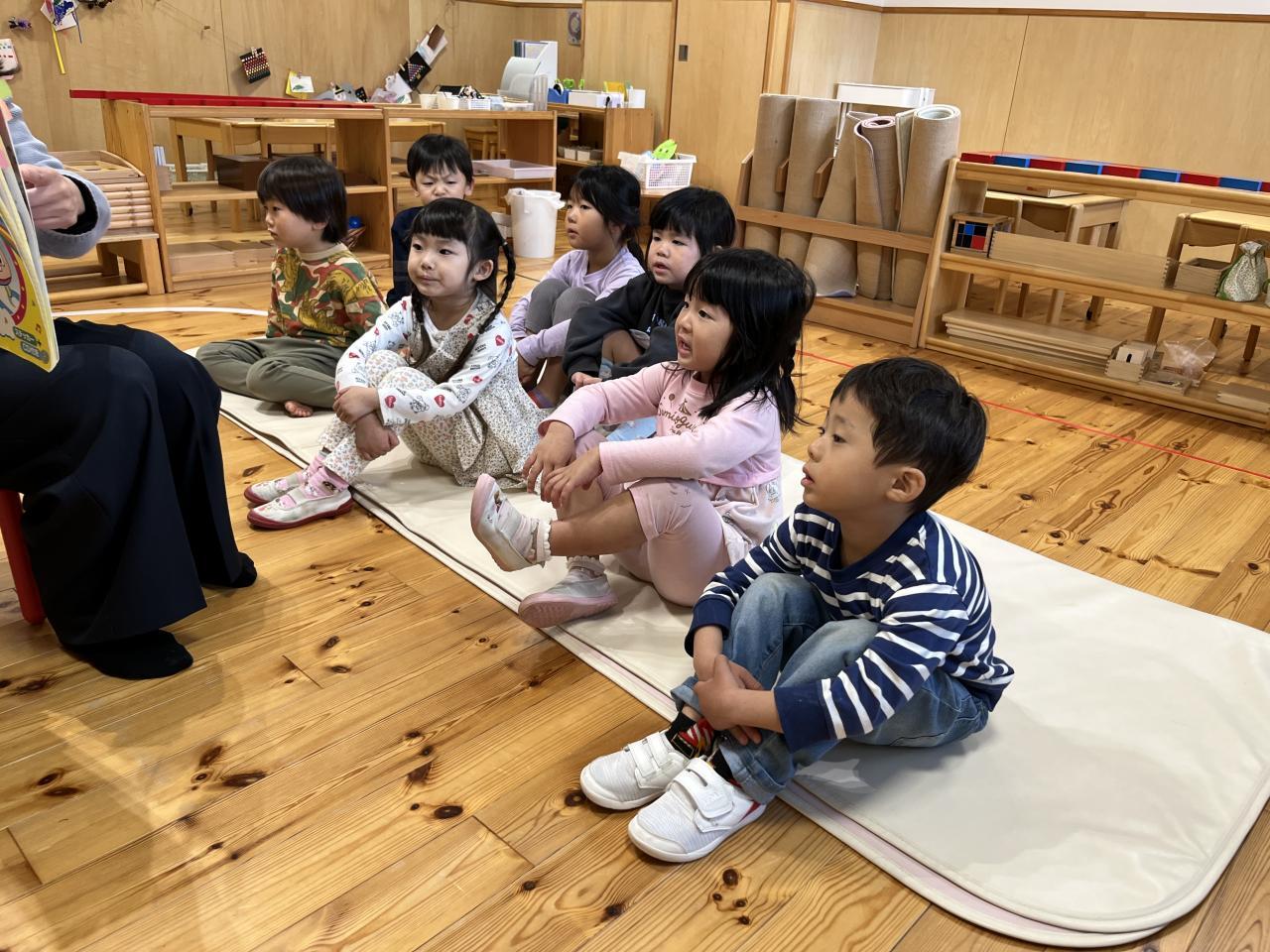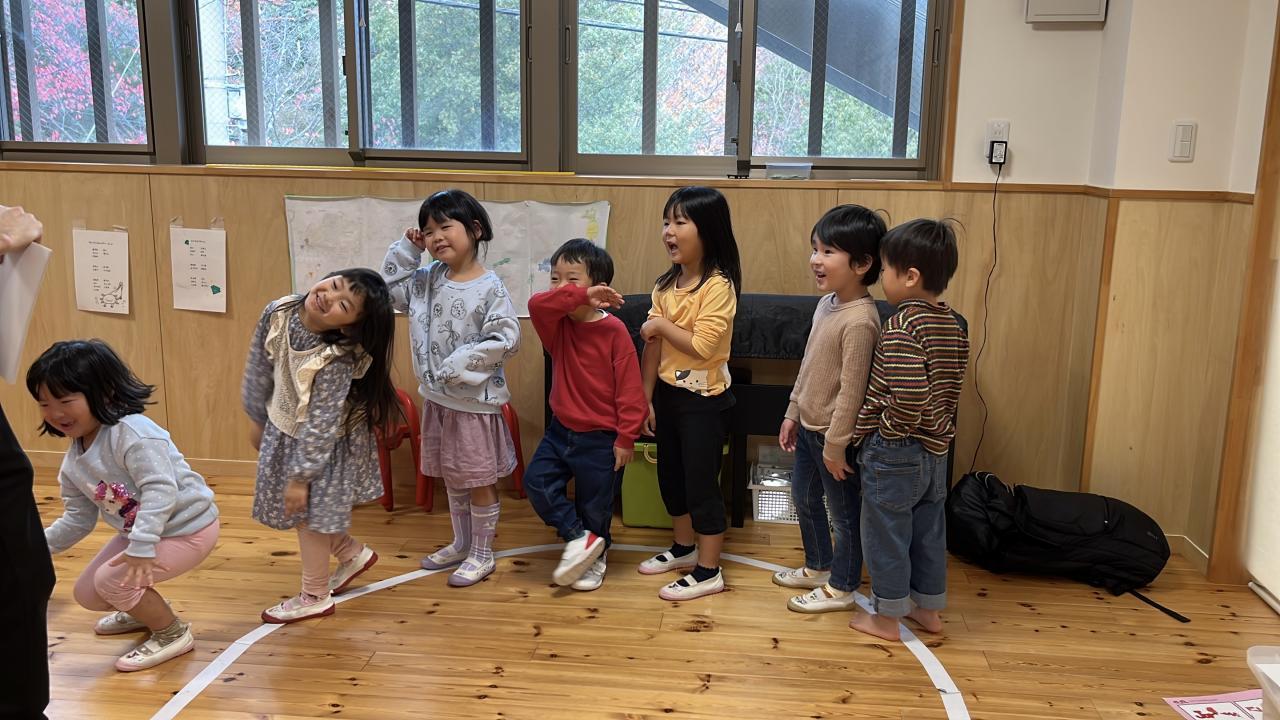 先生のお話を聞いて、真似してみたり、ゲームに参加したりして取り組んでいます😊