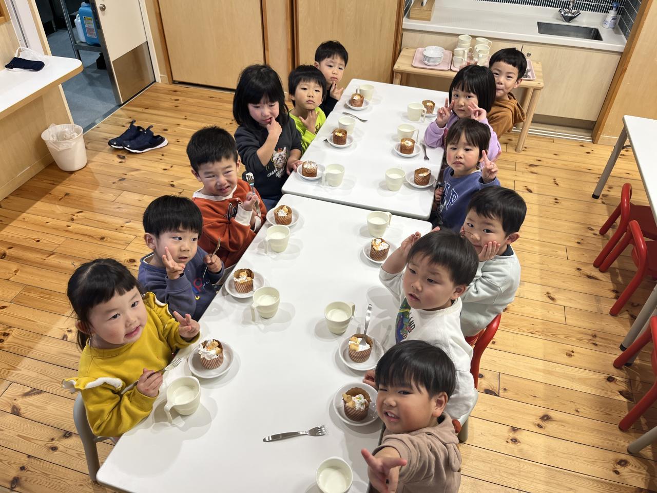 今日は幼児クラスのみんなで、カップケーキを作りました🧁💕