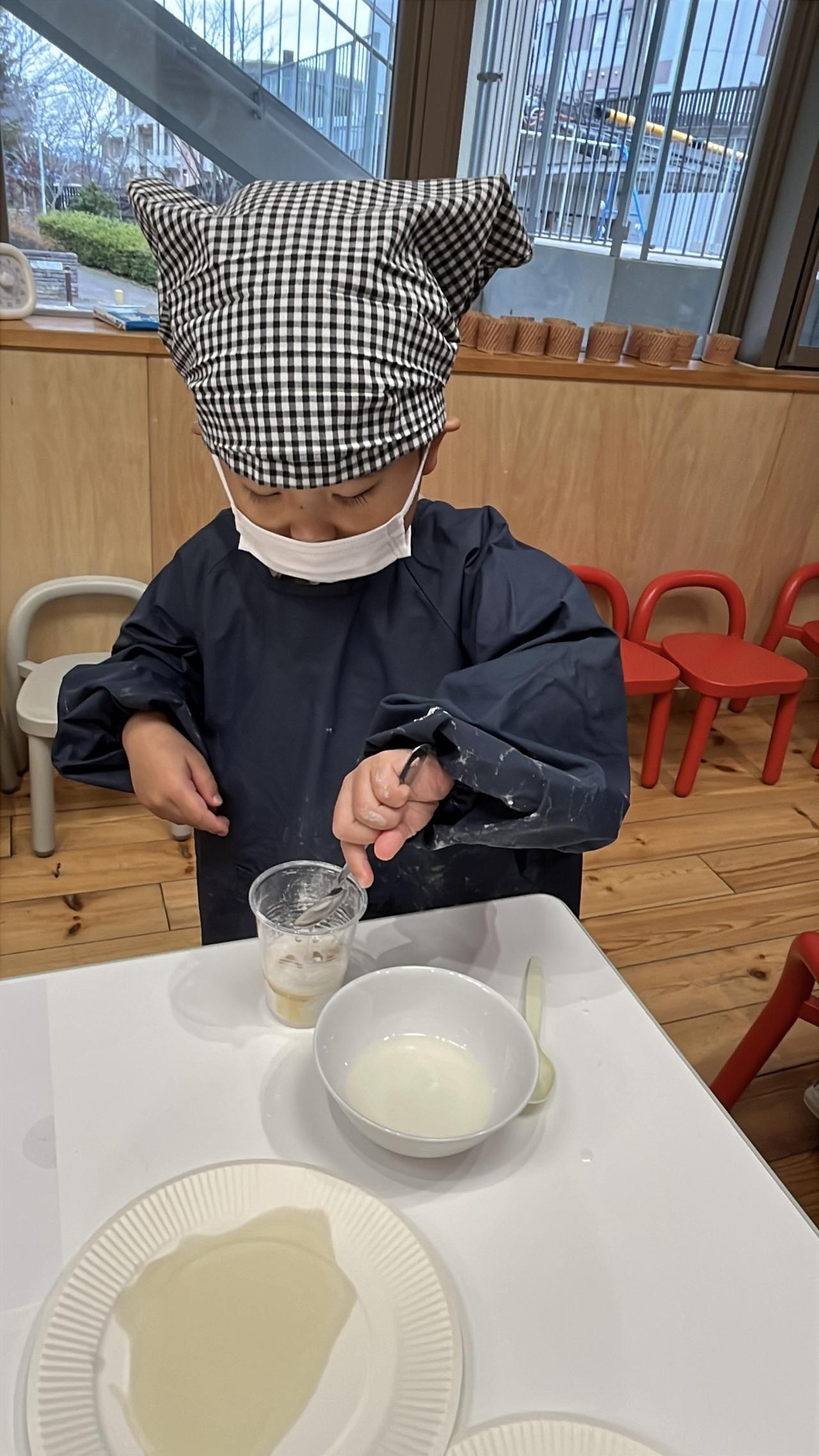このやりとりを聞いていた周りの子ども達も、生地が固まってしまうと、