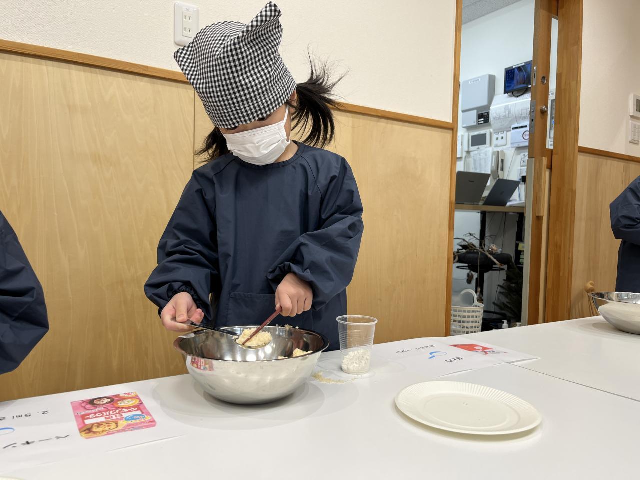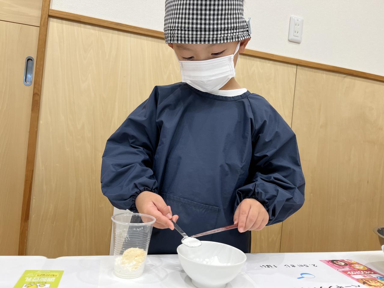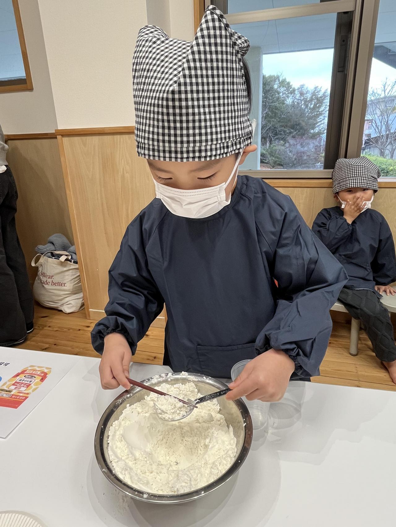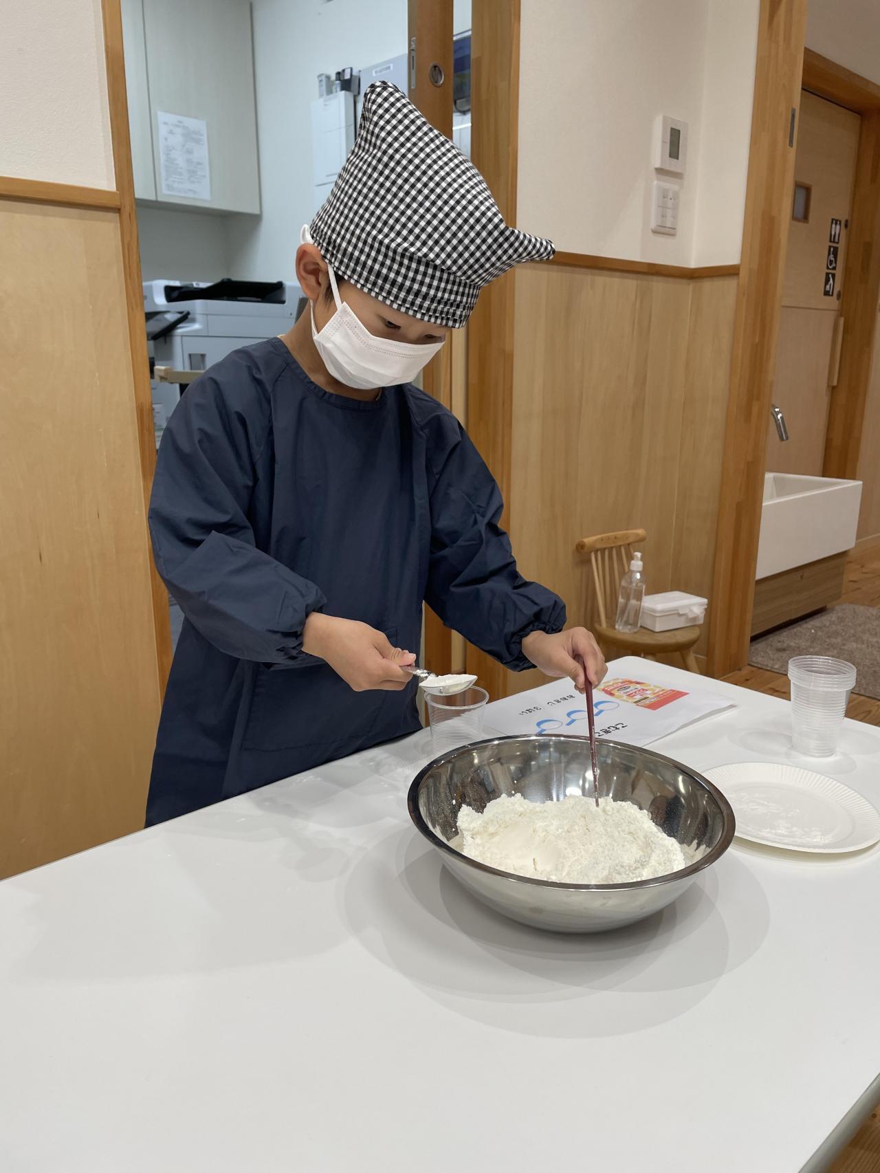 混ぜていく中で、トロッとした生地になるはずが、一つの固まった塊になる子どもも💦