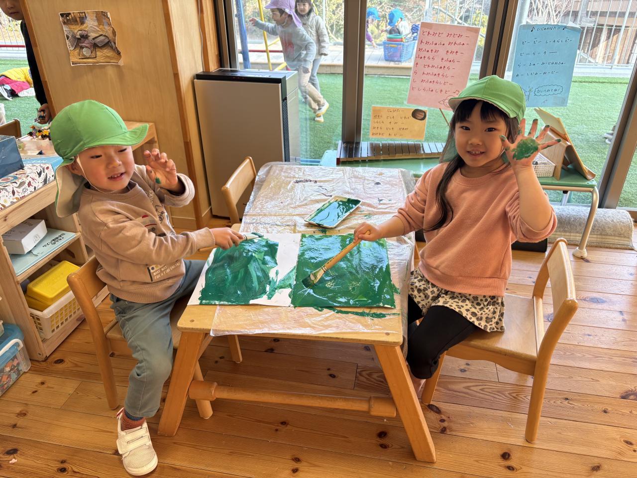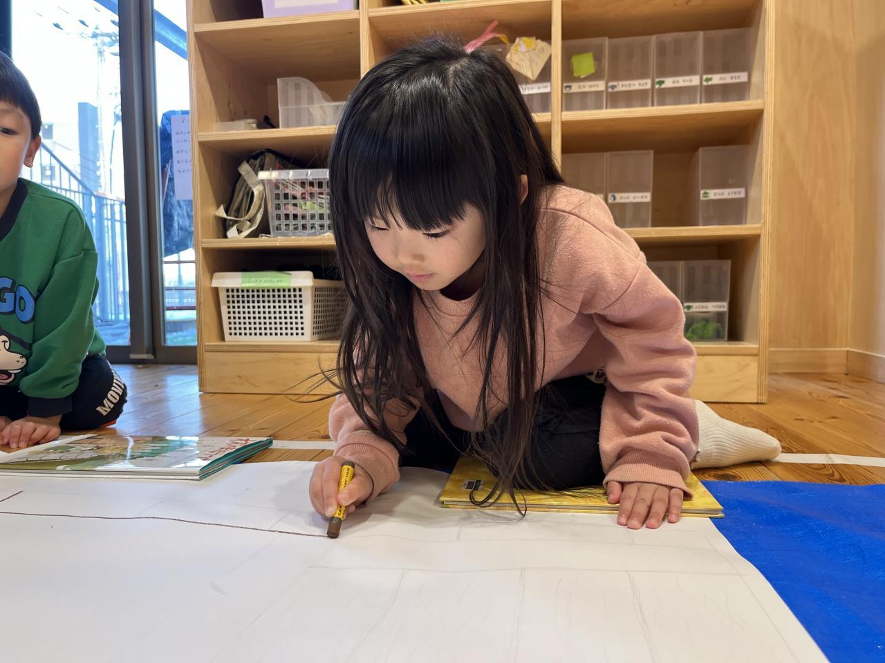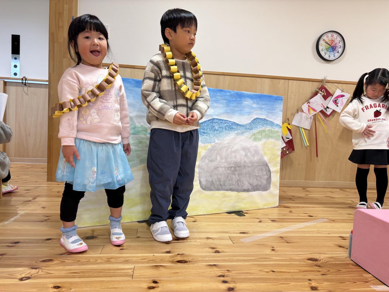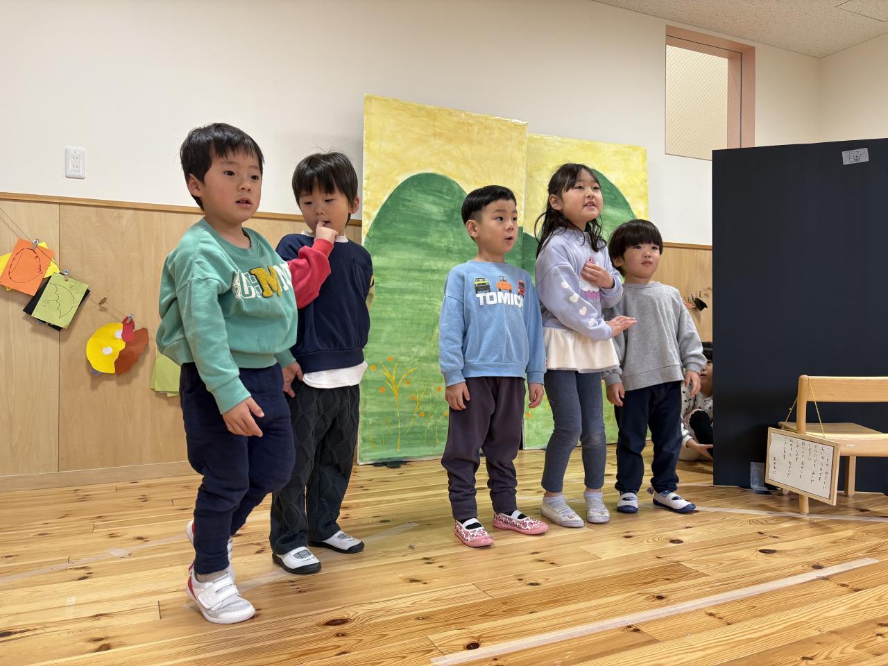 絵本や台本、歌詞カードを見たりして文字に興味をもつ姿も見られました😊