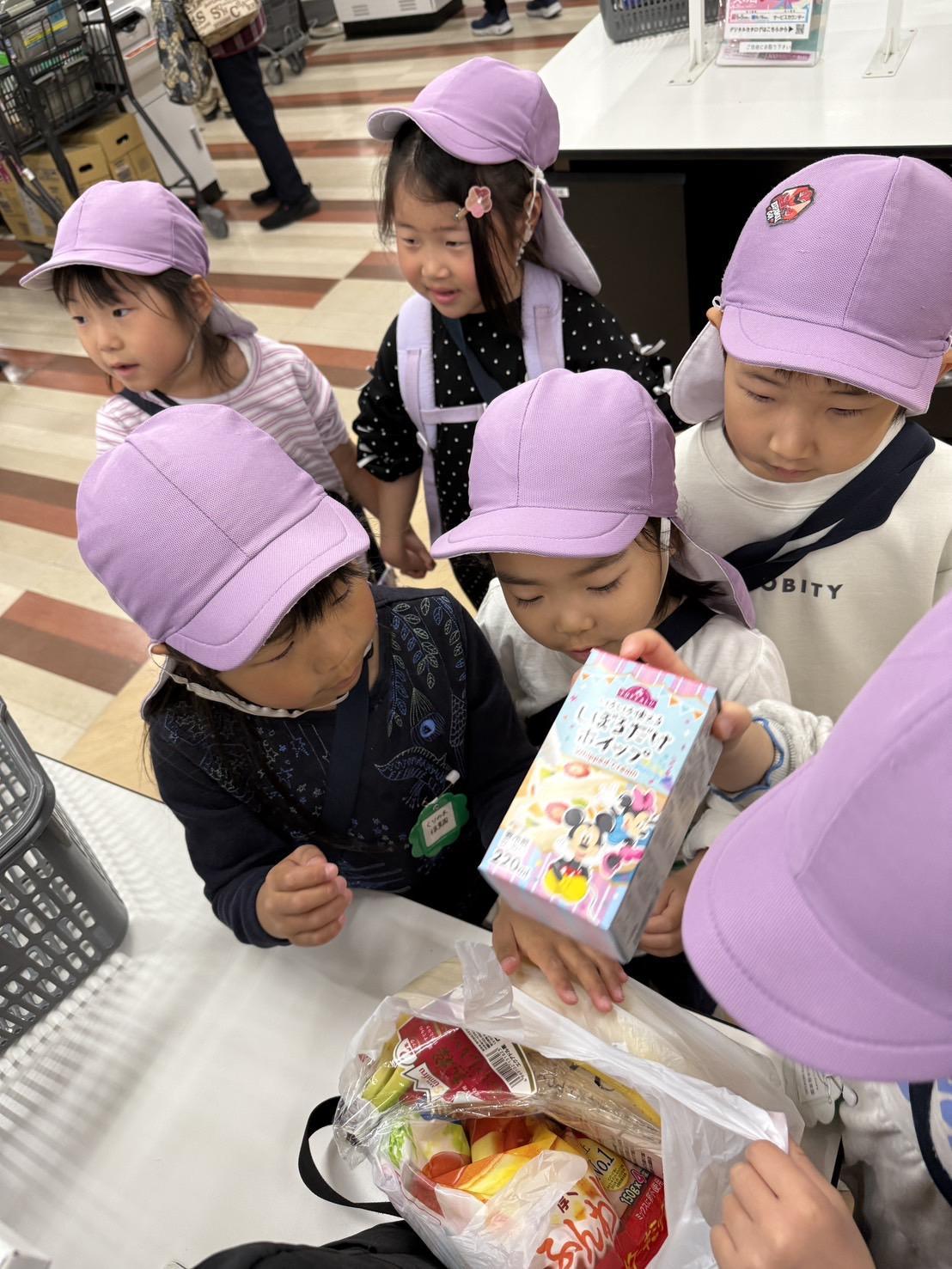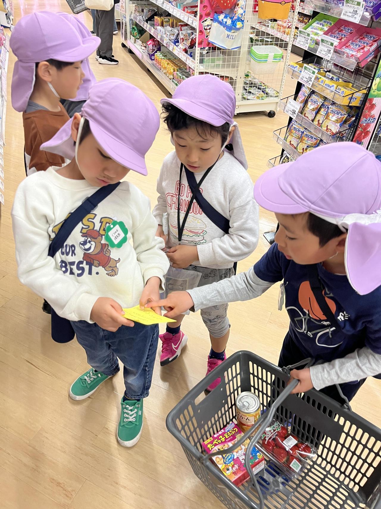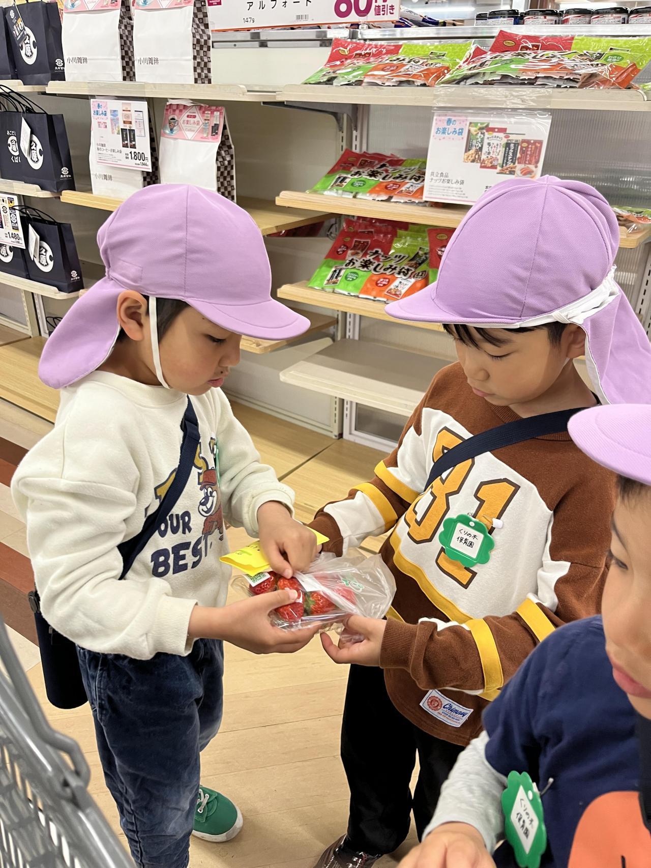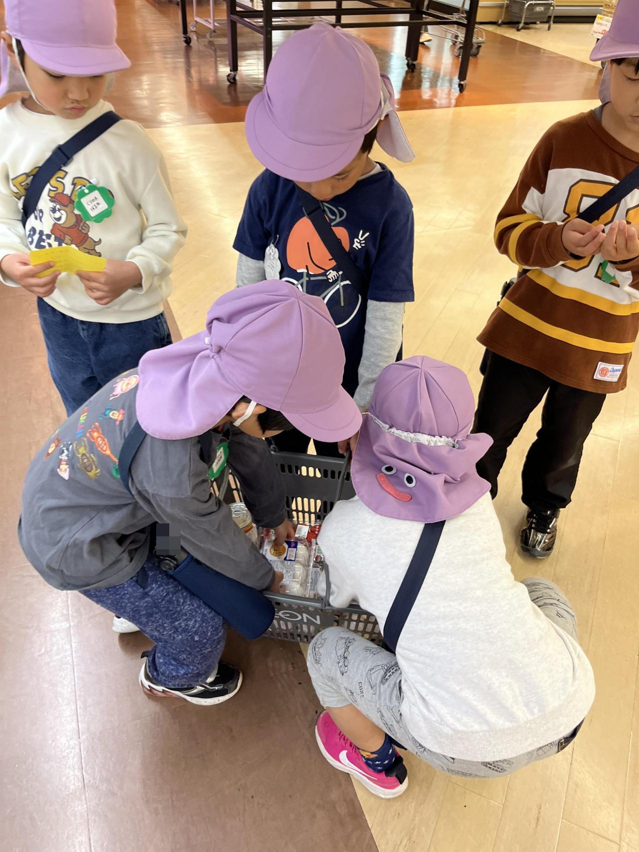 お金を持つ人・カゴを持つ人などの役割分担を、子ども達に任せてみることに。