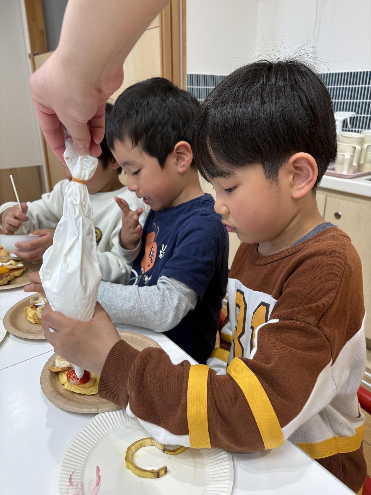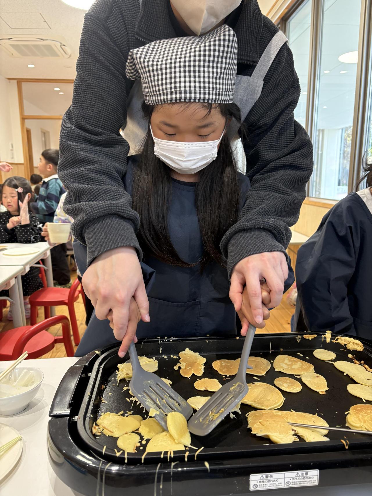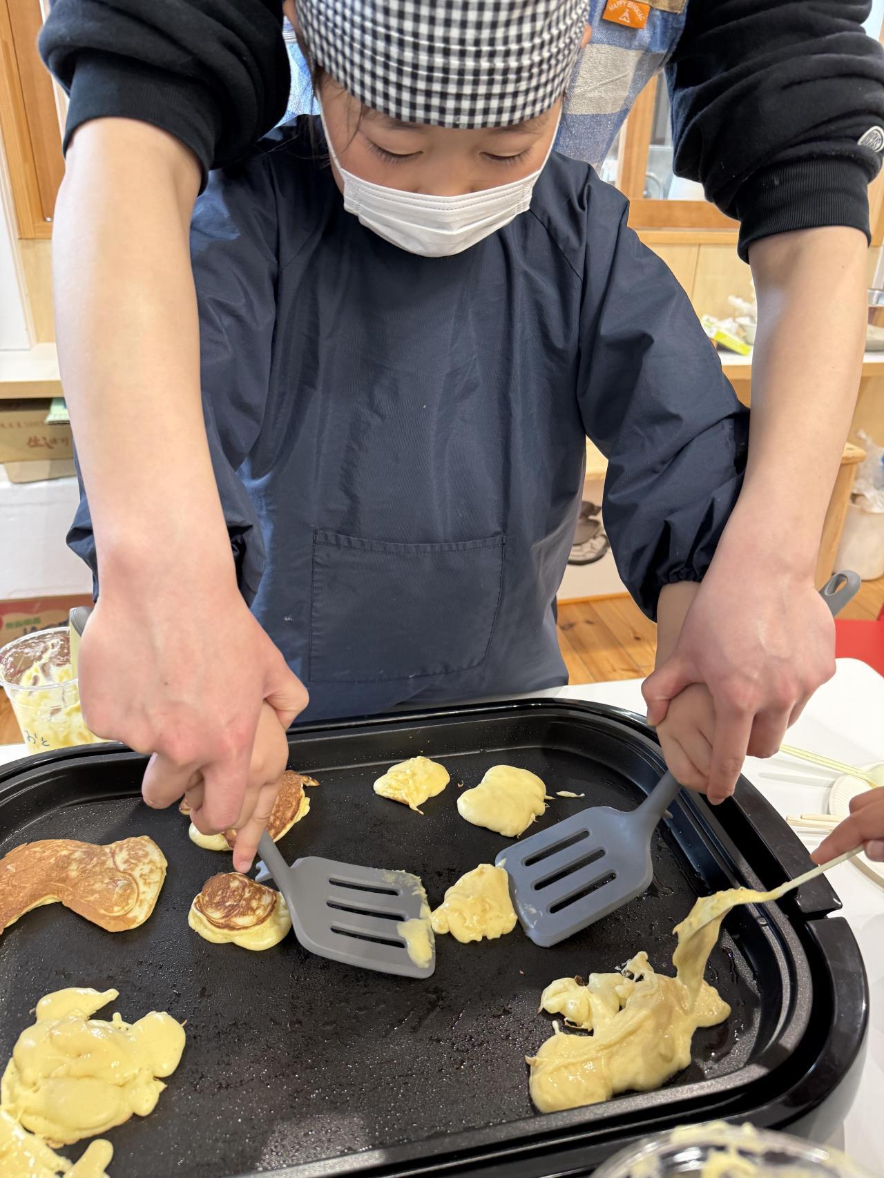 🙋「ホットケーキだったら、みんなでひっくり返したり、トッピングしたりできるかな?」