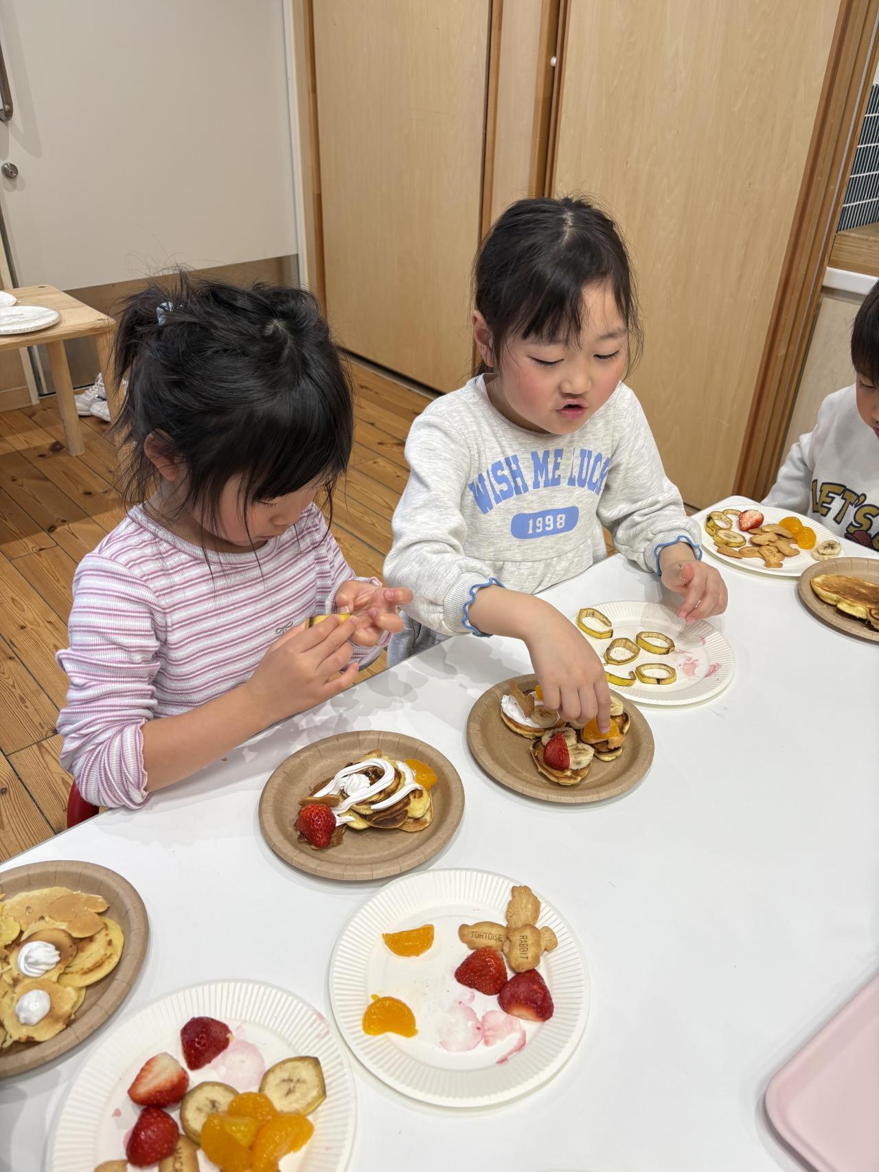 思い思いのトッピングをし、とっても素敵なパンケーキが完成しました💕