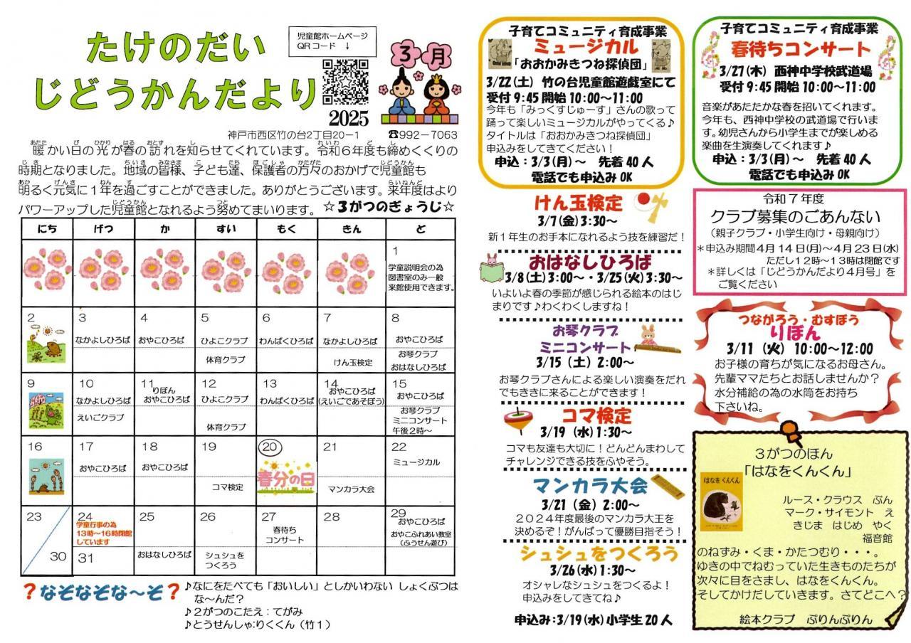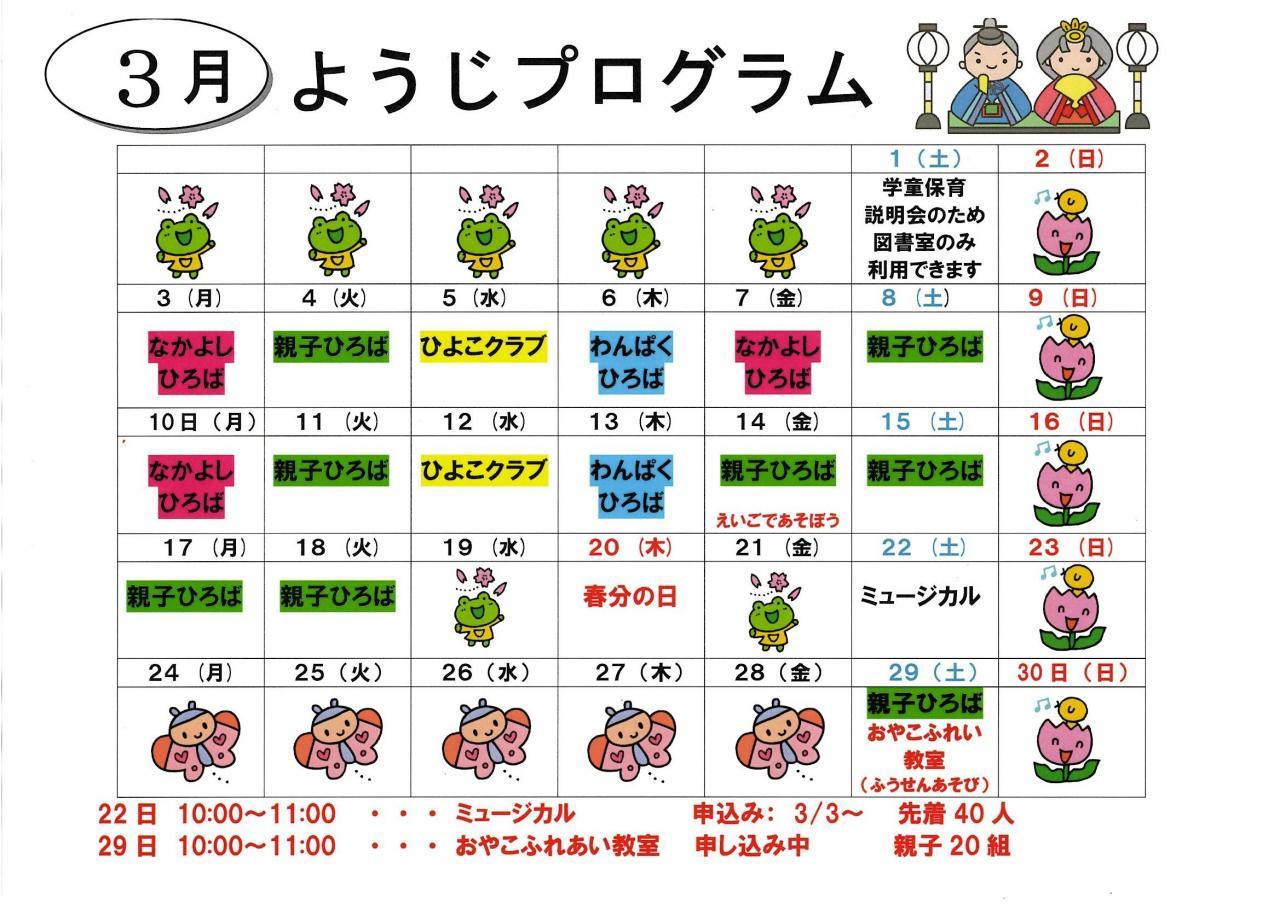 3月乳幼児親子 ひろば日程表