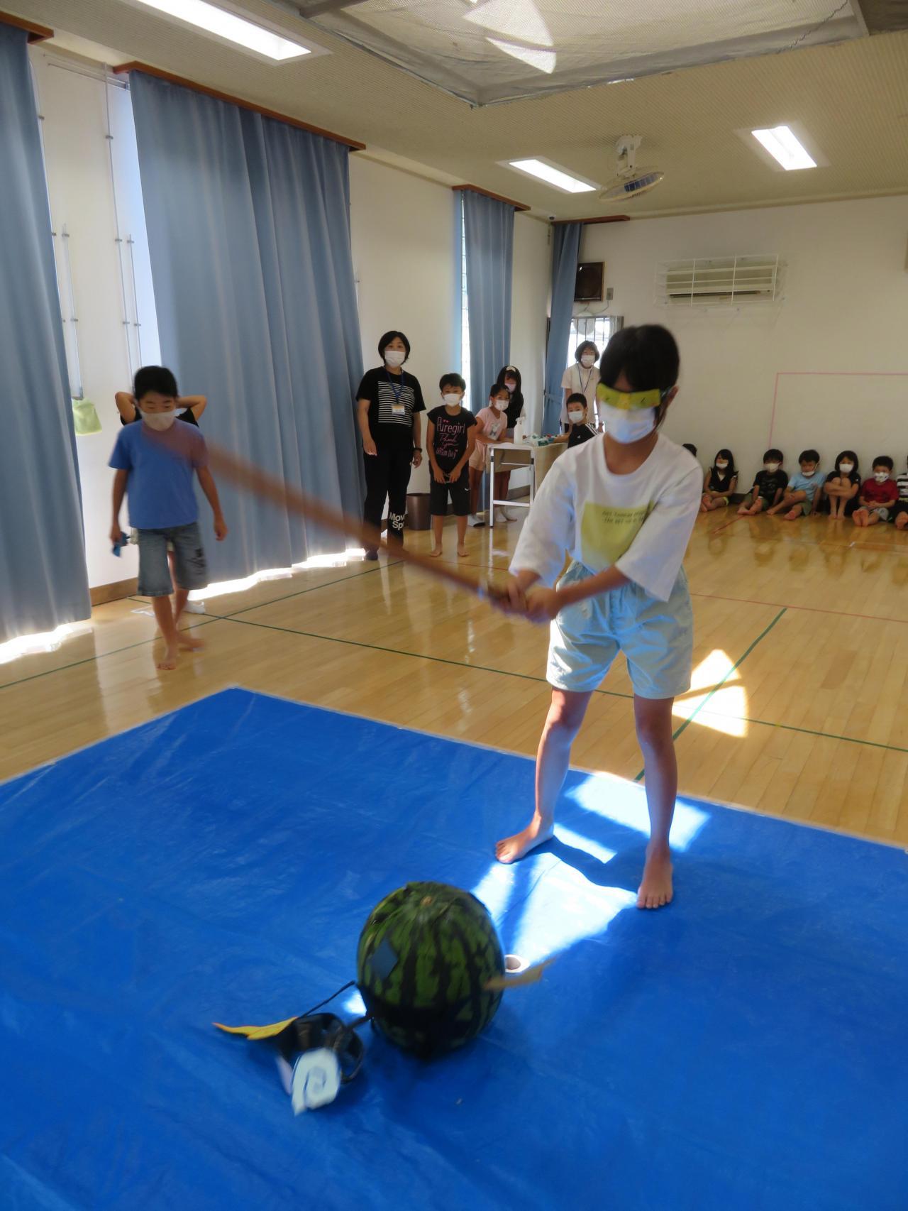 午後1時からは、1年に一度のお楽しみ!『スイカ割り』をしました。