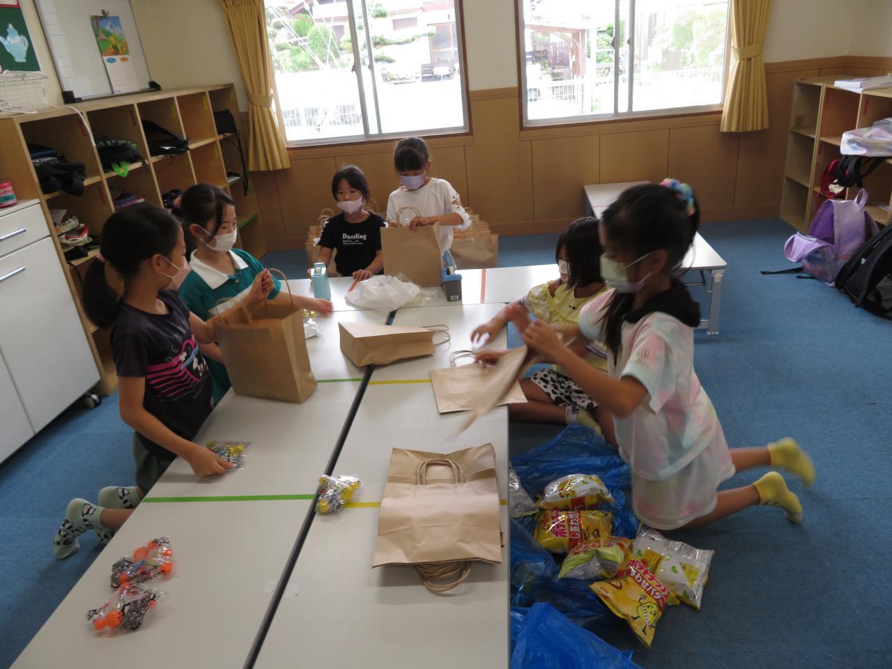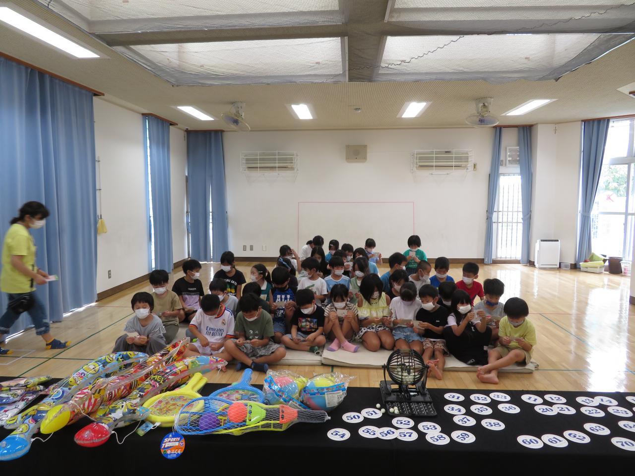 3年生以上の学童さんが夏祭りスタッフとなって、夏休み前から計画・準備をしてきました。一番最初のスタッフ会議で役割分担とどんな夏祭りにしたいか考えて、子どもスタッフから「最後にビンゴ大会がしたい!」というナイスアイディアが出てきました(^^♪