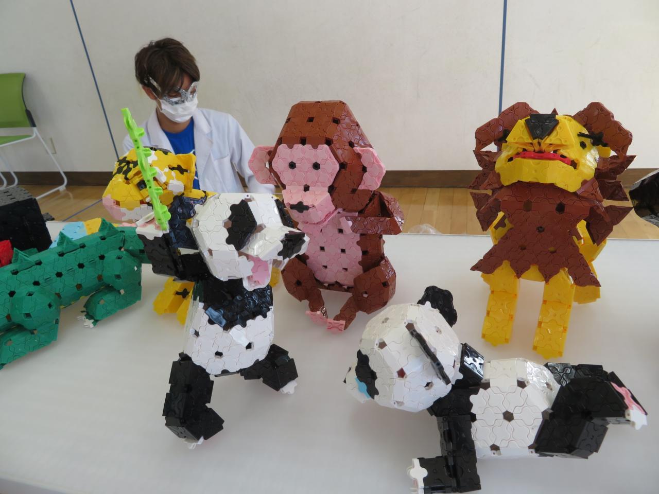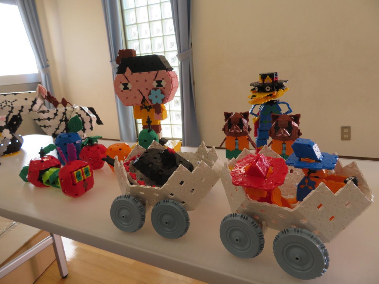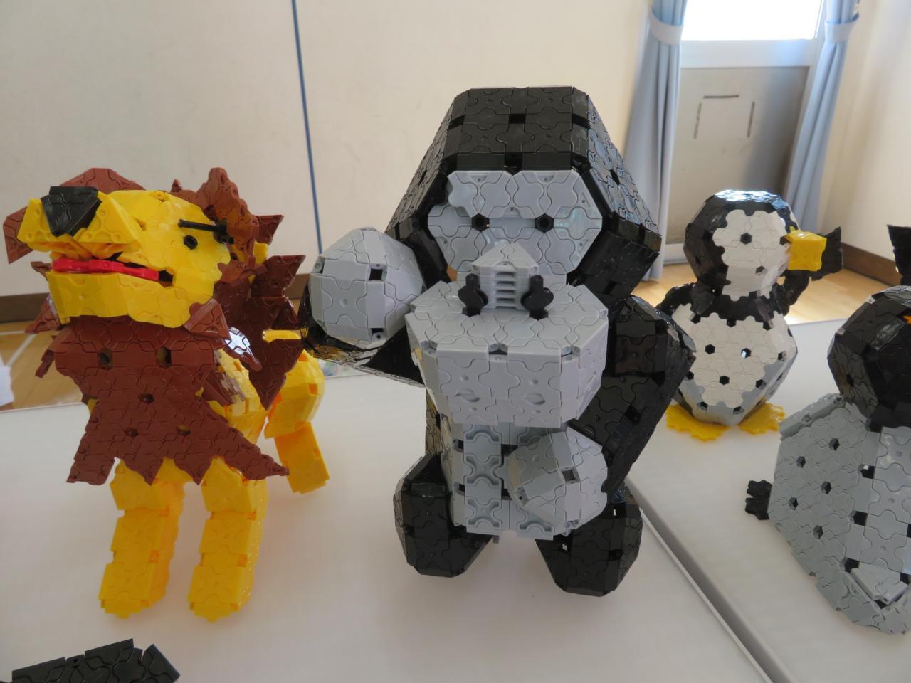 夏休み中もラキューでたくさんの作品をつくって展示していたこどもたち。
