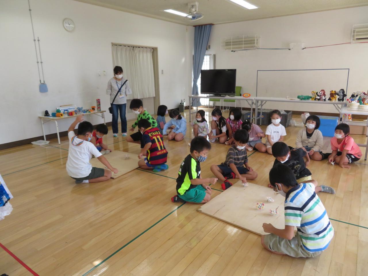 作ったコマを使ってコマ回し大会を開催しました!