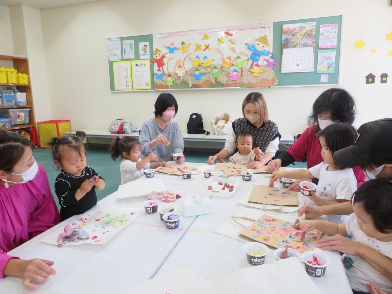 さつまいもハンコを使ってハロウィンのカバンづくりを楽しみました。