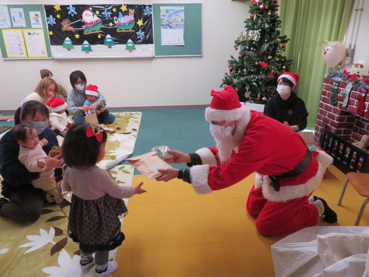 ビックリして泣いてしまう子もいましたが、ひとりずつサンタさんからプレゼントをいただきました。