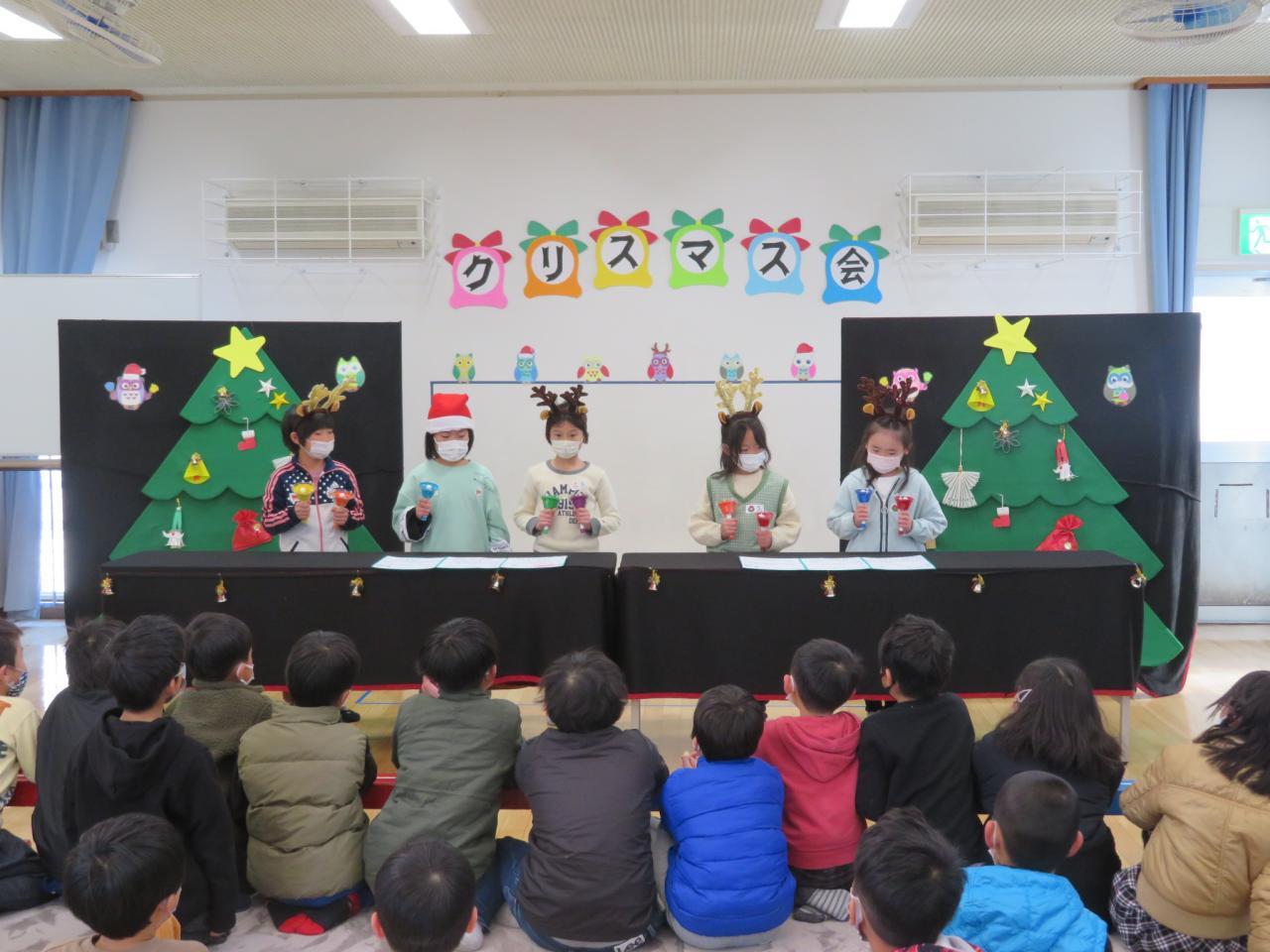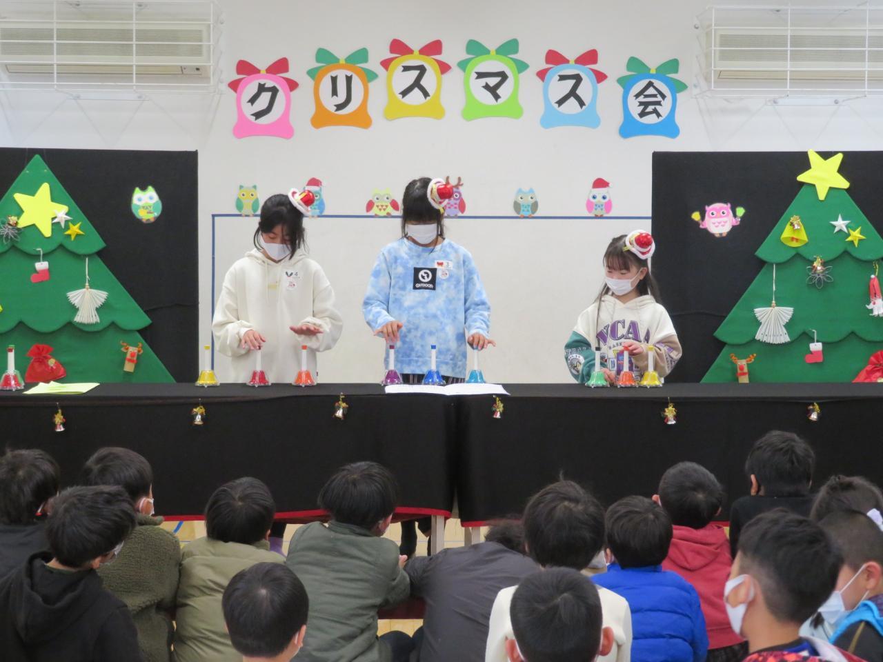 押してもなるハンドベルで、3人で9本のベルを使って、クリスマス会を盛り上げてくれました(^^♪