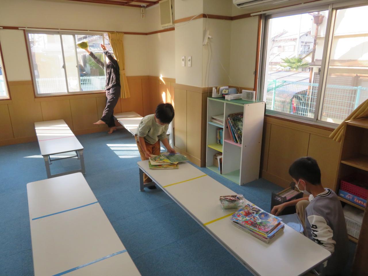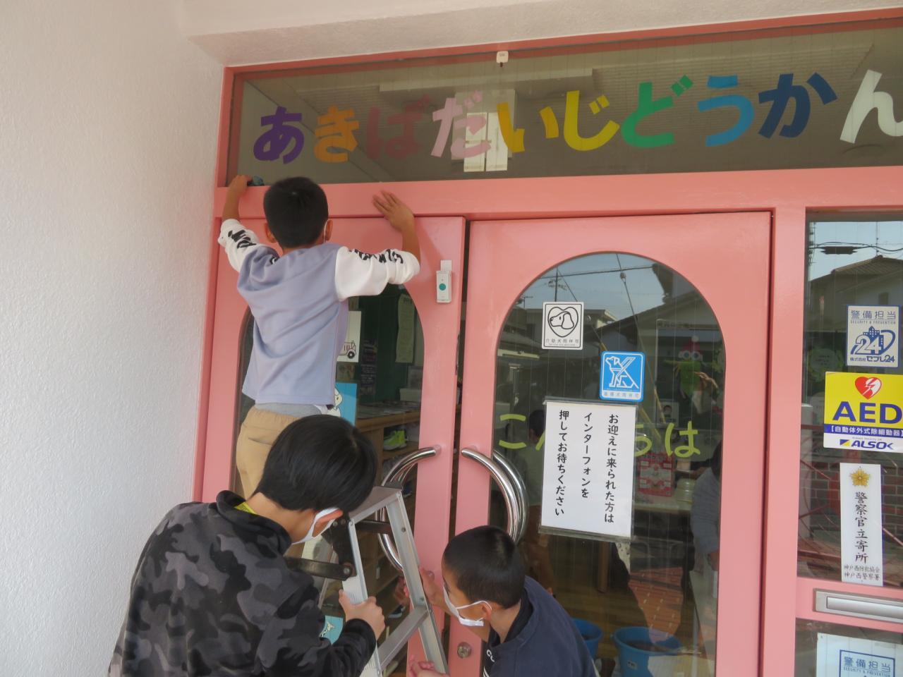 始まる前は、「え~('Д')あそびたい…」と言っていたこどもたちですが、始まると「大掃除って意外に楽しいねんなぁ」「先生!窓をふきに外に行ってもいい?」「ここも汚れてる~!」とどんどんお掃除してくれました。