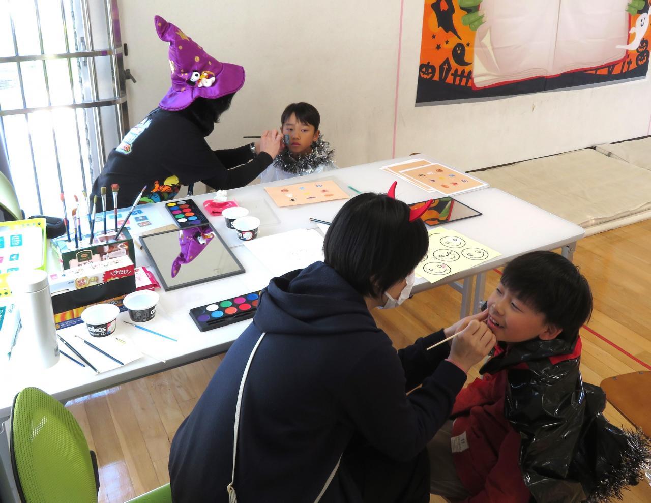 まずはそれぞれの衣装に着替えて、フェイスペイントやネイルシールに挑戦☆