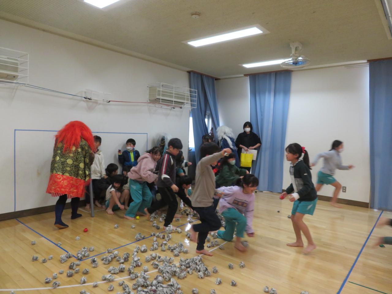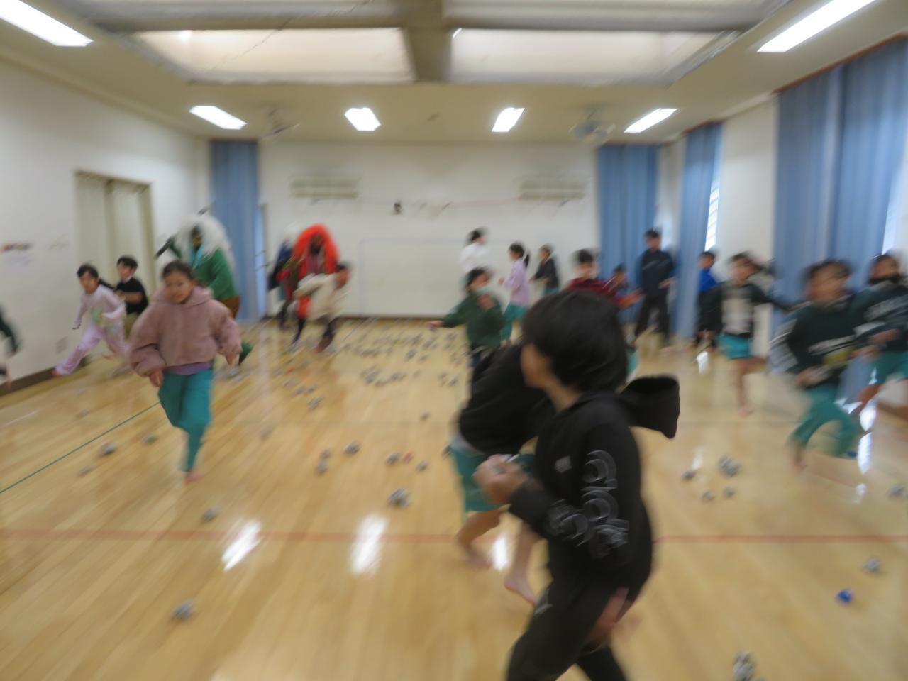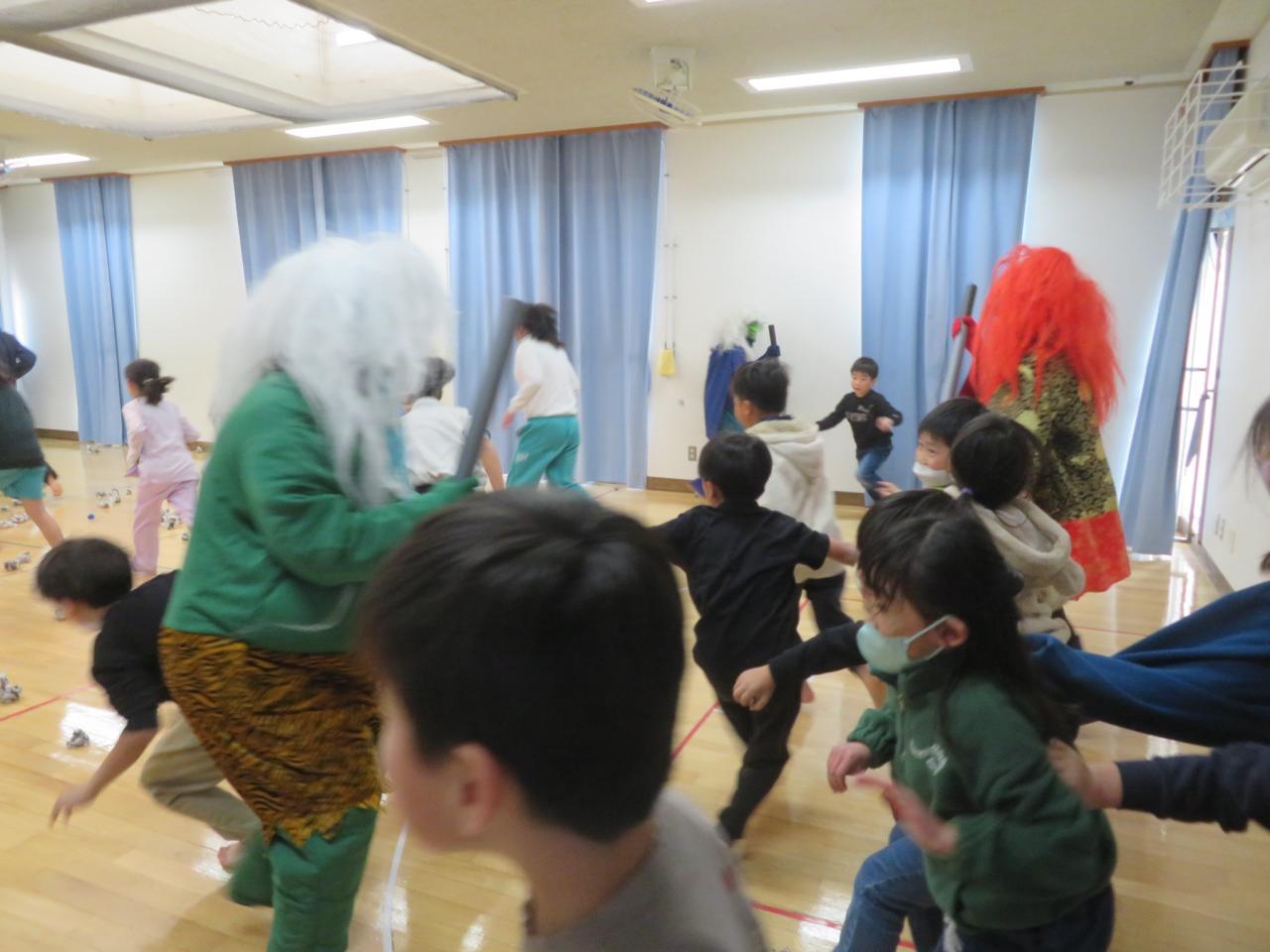怖くて泣いてしまった友達に寄り添う姿や勇気を出して果敢にお豆を投げに行く姿、ラムネをもらった時に「ありがとうございます」ときちんと言えたりと、節分の会がこどもたちをまたひとつ成長させてくれました。