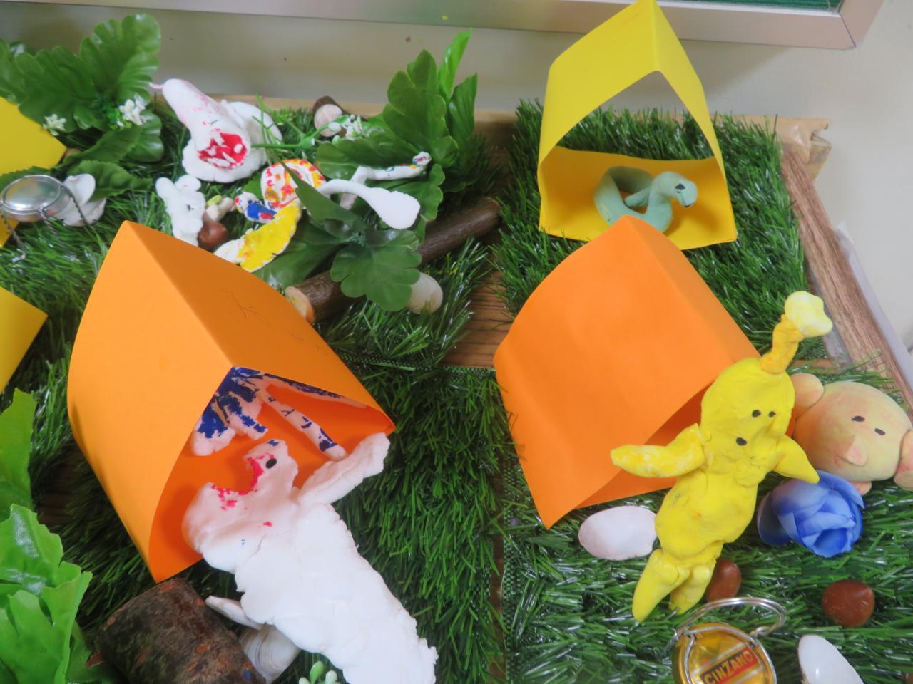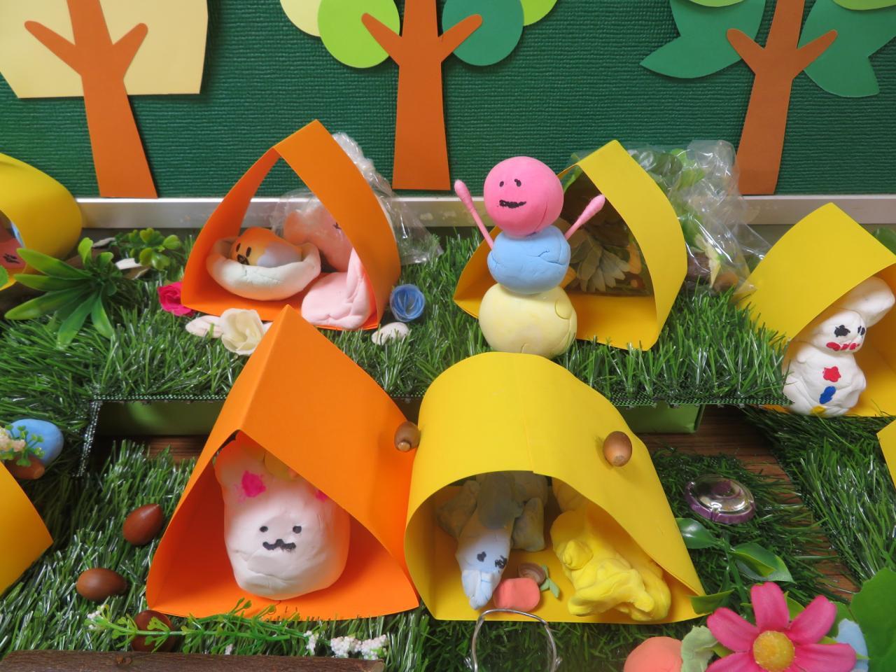 基本の材料:ふわふわ紙粘土・テント・芝生1区画