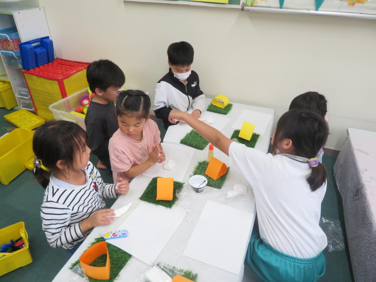 ふわふわ紙粘土で『あきばの森』の住人をつくって、秋葉台児童館通貨“サニー”を使って好きな材料をお買い物をしながら工作を楽しみました