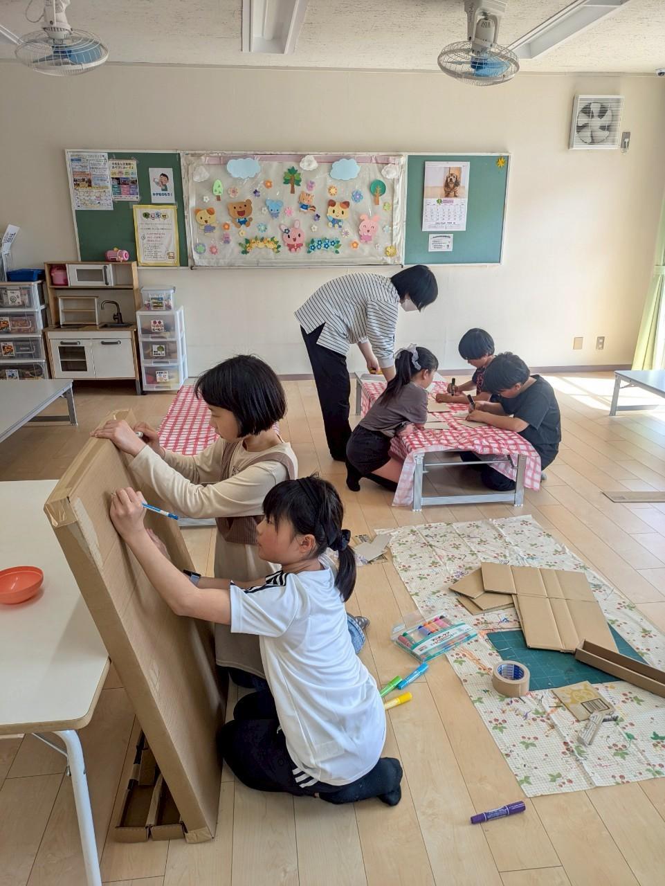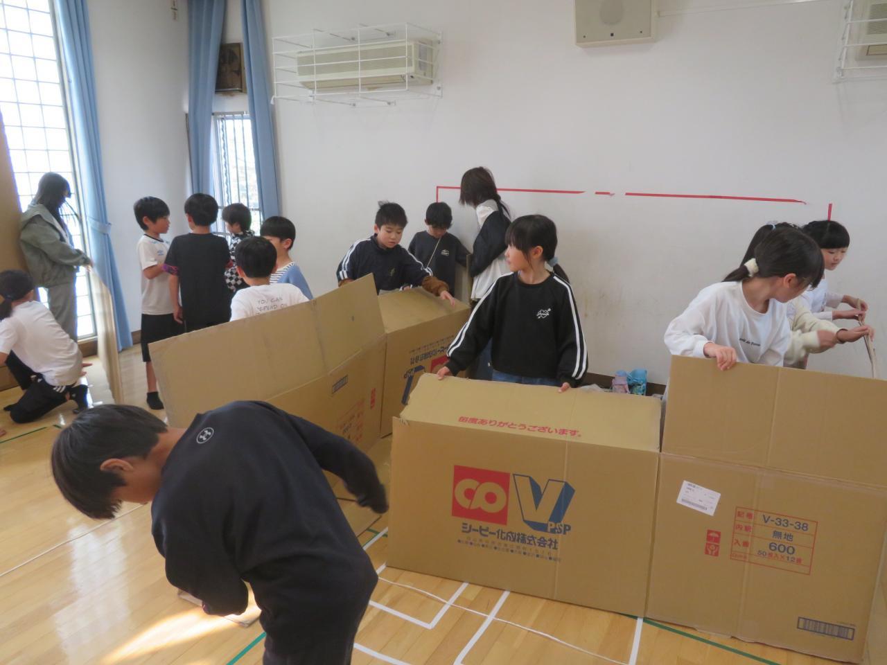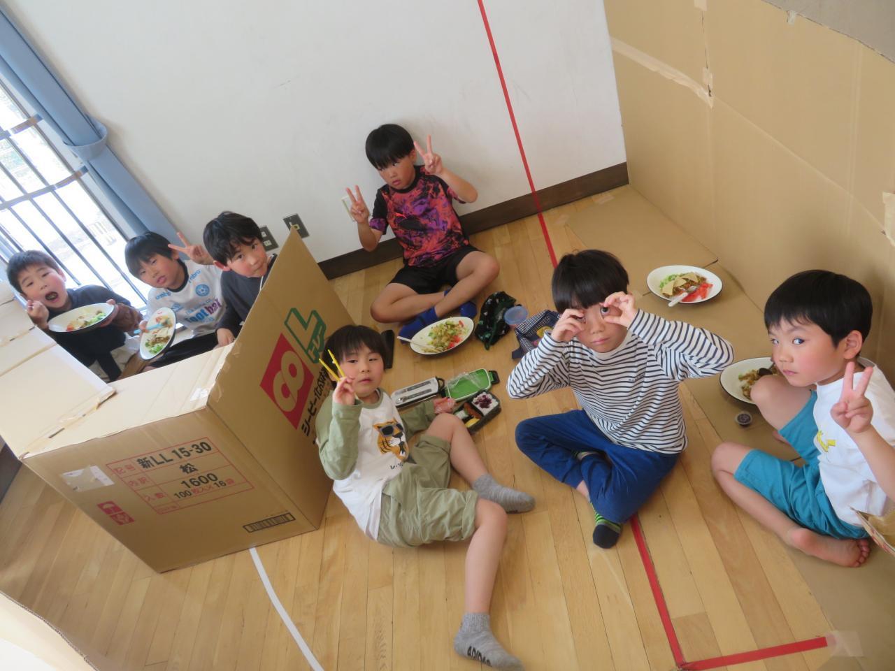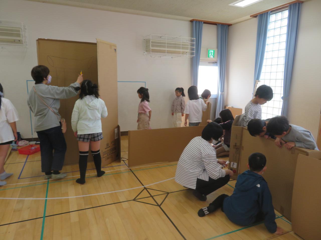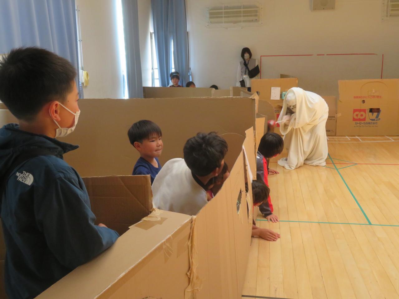 今年も2日間連続行事でダンボールハウスあそびを行っています。
