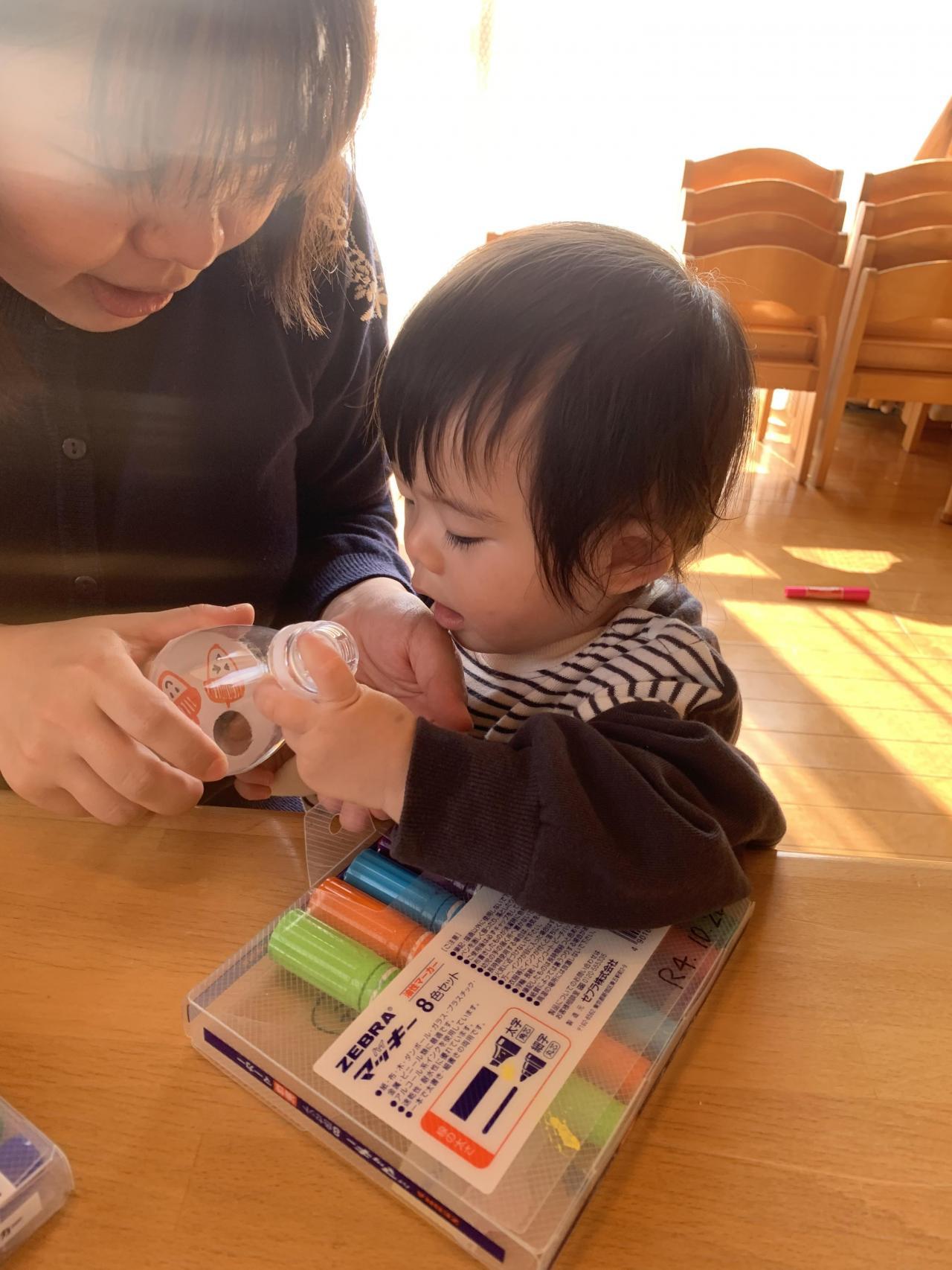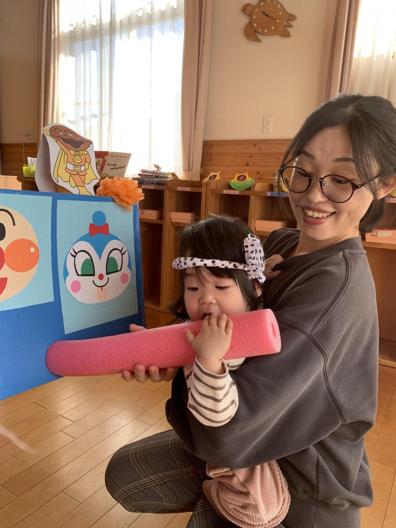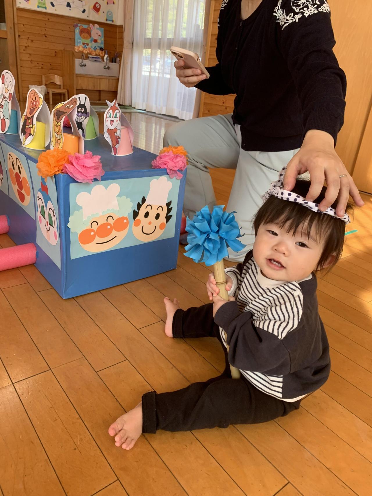 製作では、ヨーヨー釣りのヨーヨーや、どんぐり落としを作りました🌰 今回写真を撮り忘れてしまいましたが、好きなキャラクターをお母さんが頑張ってくれかわいいヨーヨーが出来上がりました😊どんぐり落としも「どんぐりころころ」の歌に合わせたイラストに一緒にどんぐりを入れて素敵などんぐり落としが出来上がりました✨またお家でたくさん遊んでくださいね!