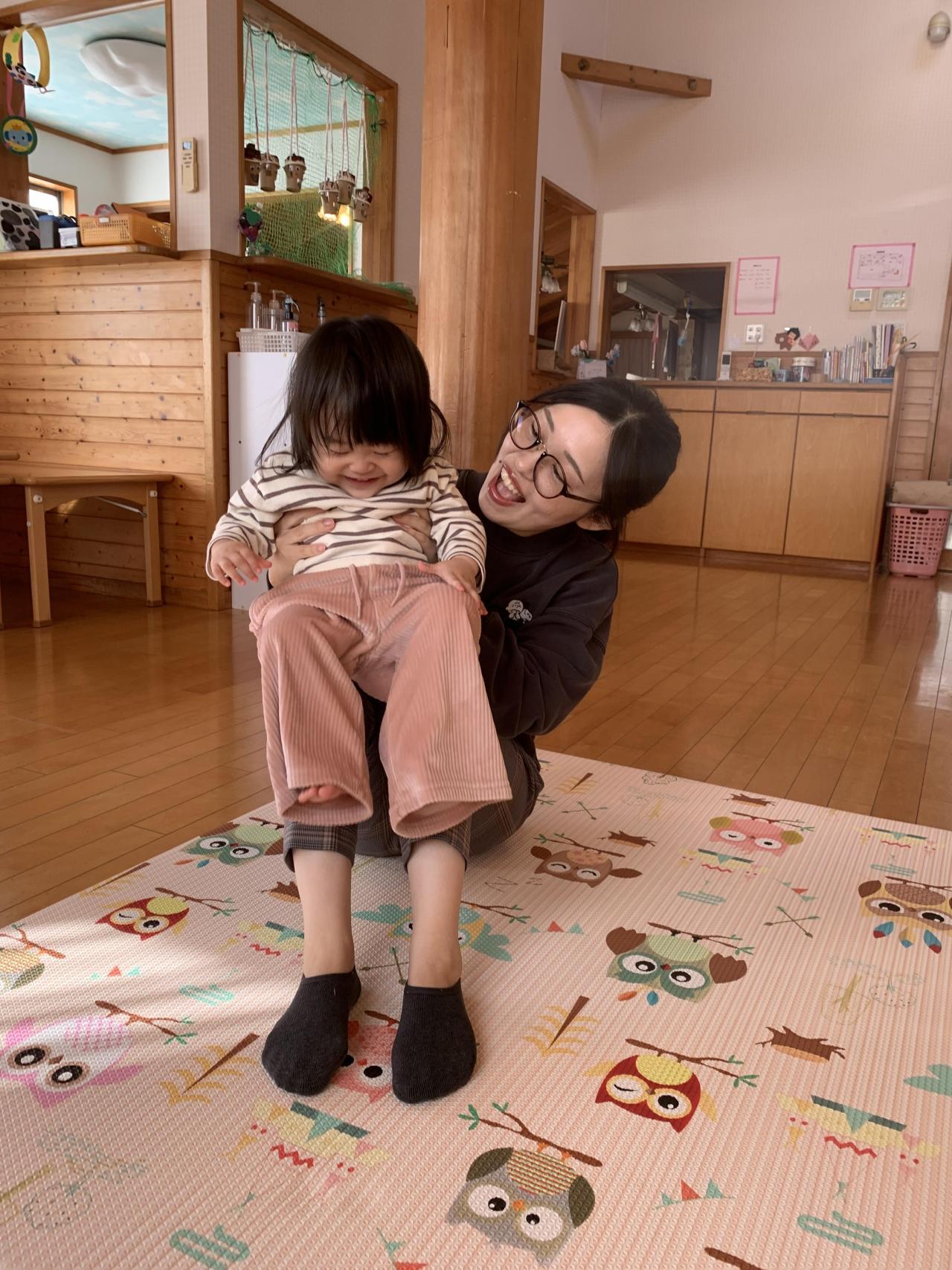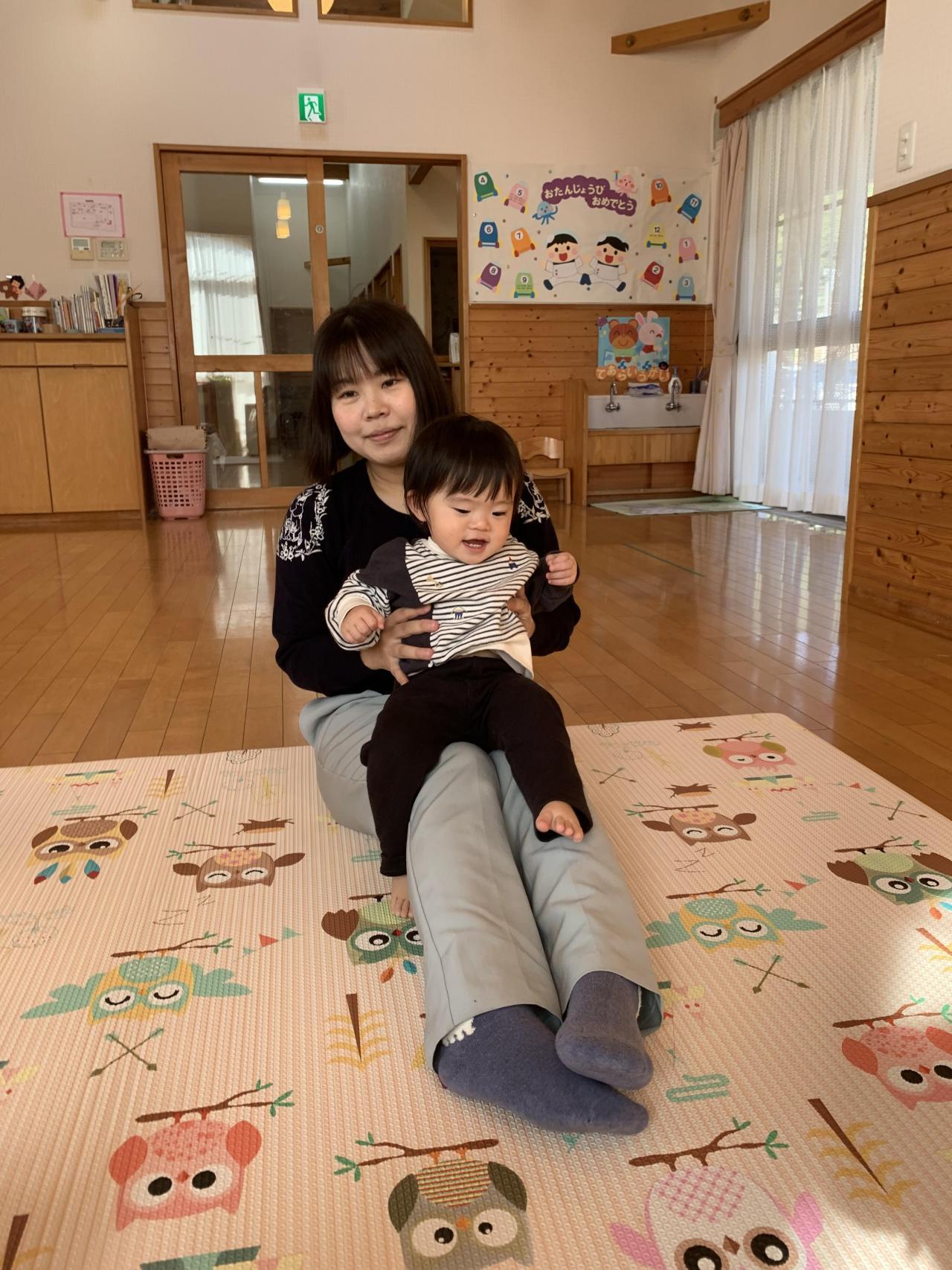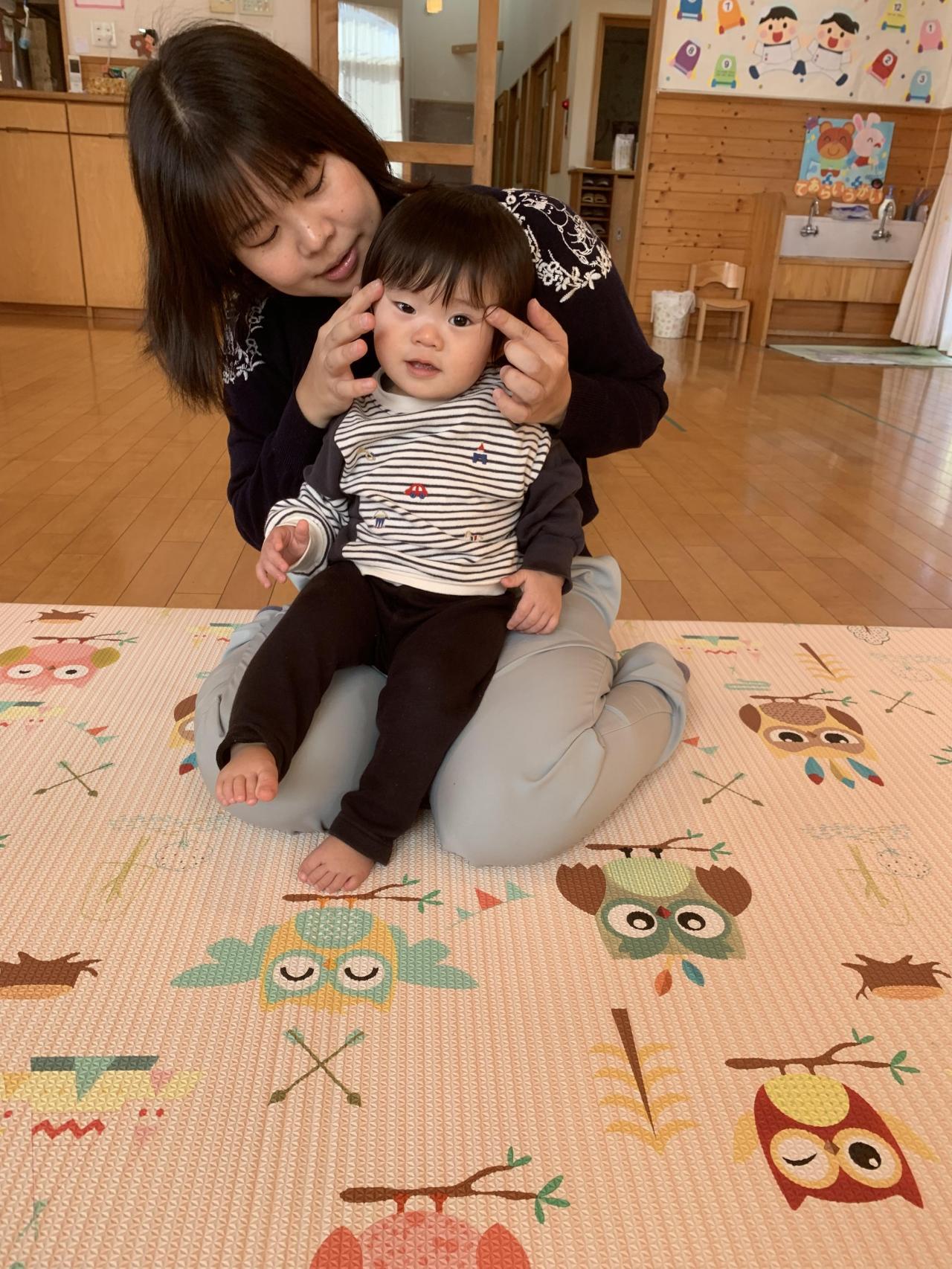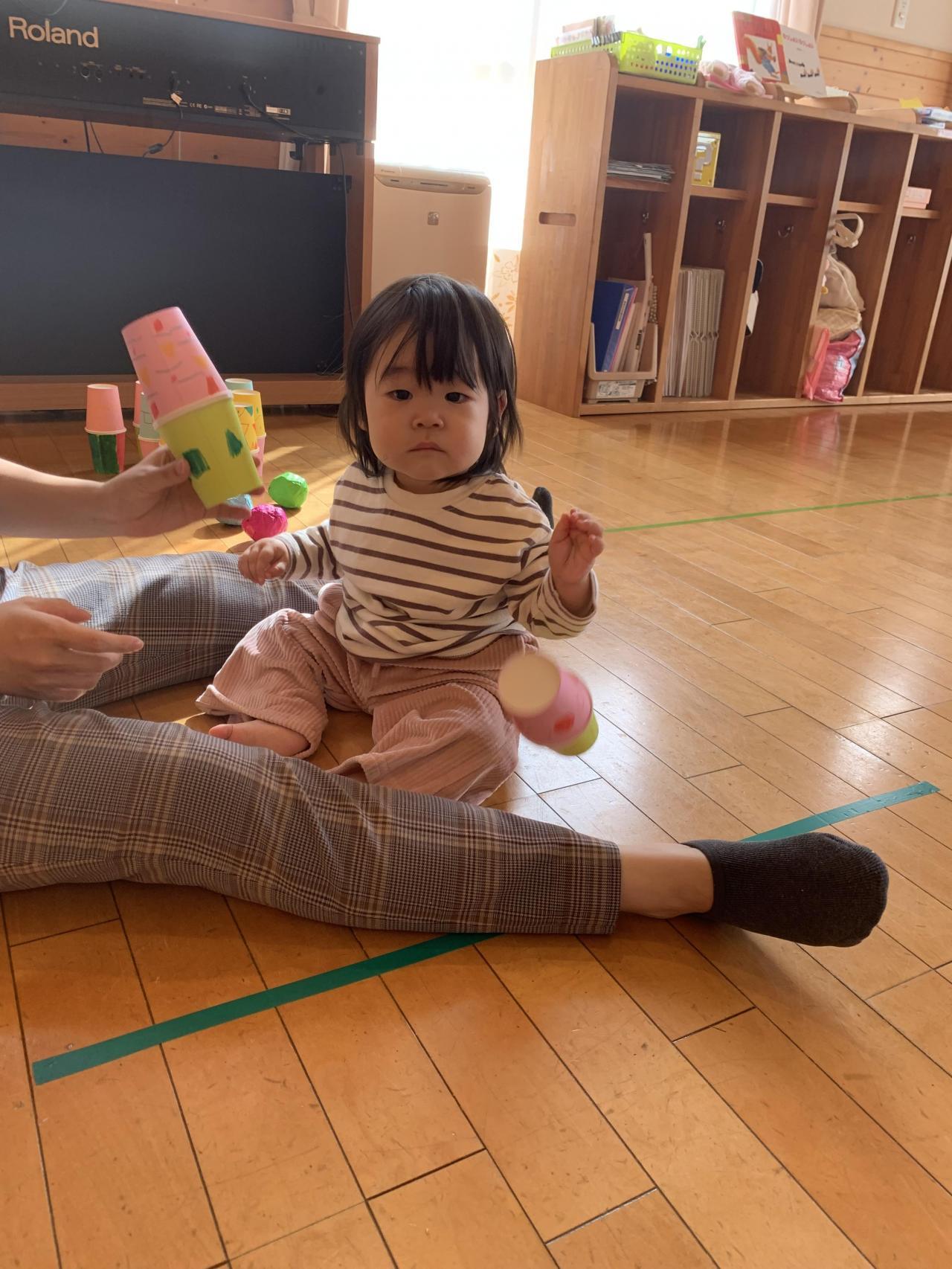 わらべ歌・ふれあい遊びの時間にはミノムシや葉っぱになって風に吹かれたり、お母さんのお膝の上で滑り台をしたり…今日はご機嫌斜めだったお友だちもお母さんとたくさん遊んでふれ合って、みーんなニコニコ笑顔に…🥰やっぱりお母さんの力はすごいですね✨