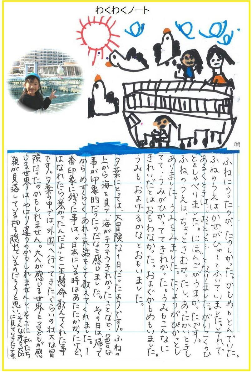 年長児は、登園するとすぐに昨日の神戸での出来事を教えに来た。「船に乗ったで!」「外国の人と話したで!」「大きいのの様にあいさつしたで!」「めちゃめちゃ歩いて、つかれた。」など。それぞれの感じたことを楽しそうな表情で話してくれた。良い経験だったのだろう。