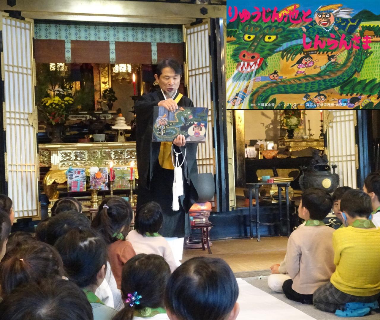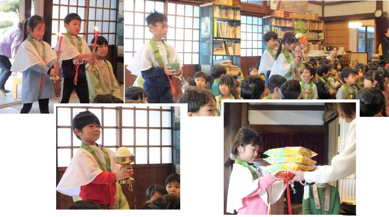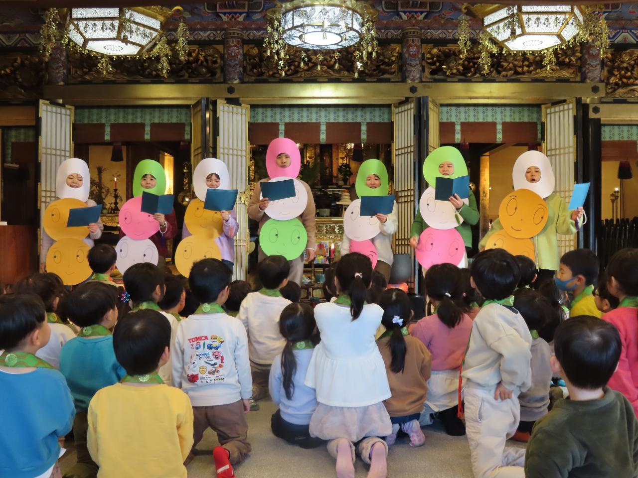 1月11日(木)午前9時30分より正福寺本堂に、幼児クラスとうさぎ組の2歳児が参拝し、こどもの報恩講が行われました。