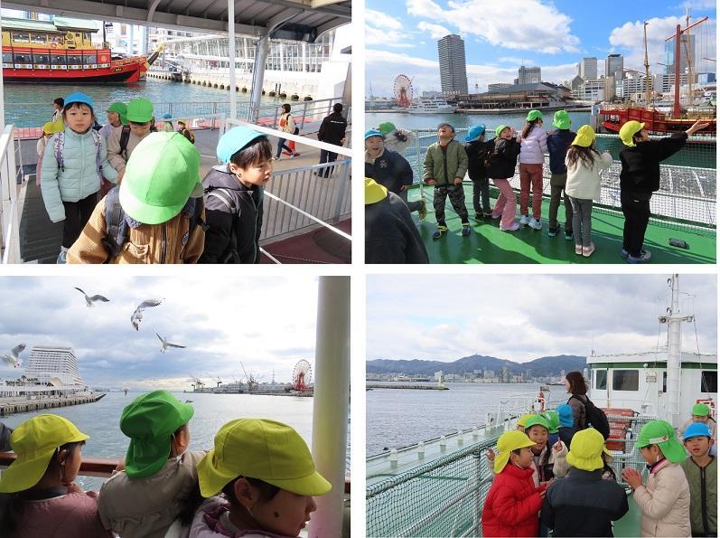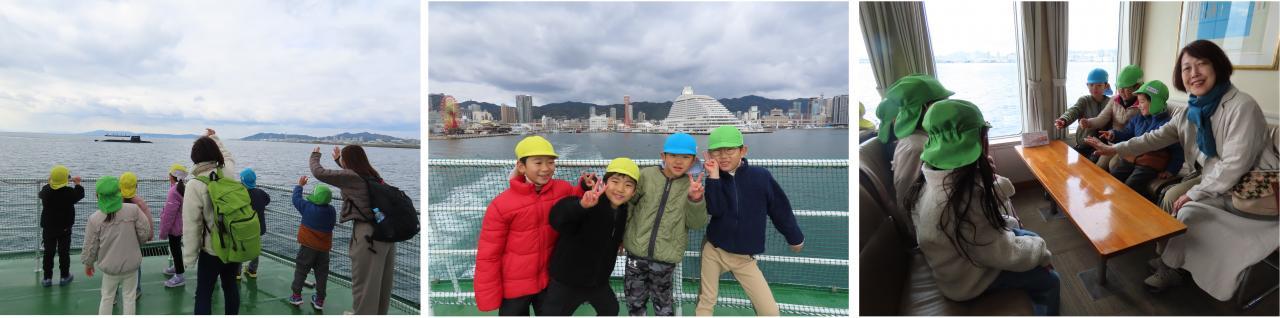 遊覧船ロイヤルプリンセス号の上では、まず「カモメめっちゃおる」と驚き、景色を見たり、スクリューから出る泡をじっと観察している児もいました。