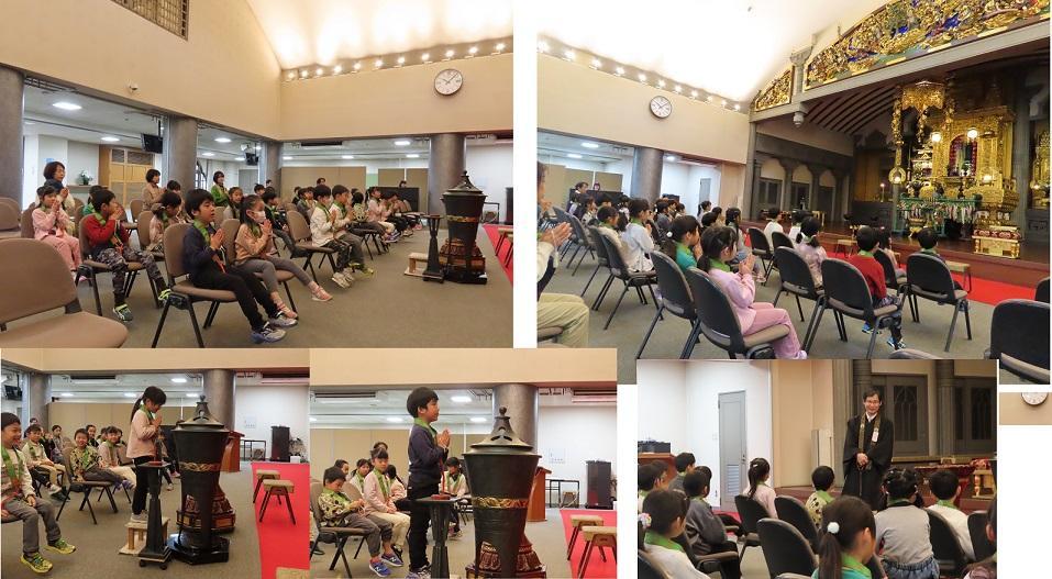 別院の本堂でのお焼香は、いつもとは違って立ったままでの焼香だったため、ドキドキしていたようでした。「できるかな?」と、不安そうにしていた児も、自分の席に帰ってくると「できた!」と嬉しそうに教えてくれました。