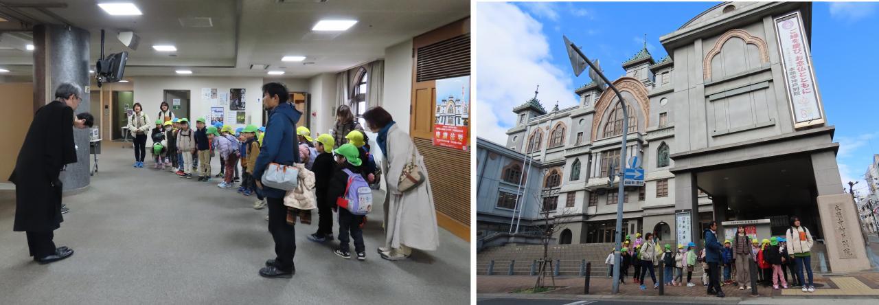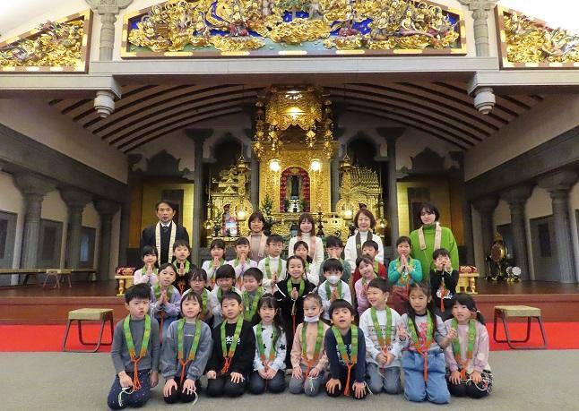 1月26日、年長児は本願寺神戸別院へ卒園奉告参拝に行きました。前日に行程を伝えていたこともあり、「今日は年長だけお楽しみがいっぱいや!」と言っていました。