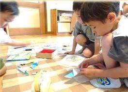 登園してすぐ絵本を手に取り、見ていた年中の男の子2人。「バッタ作ってみたい!」と。昨日、蚊のことを調べた年長さんに続き、昆虫への興味の広がりを予感させる一言。「どうやって、作る?」というところから、始まりました。