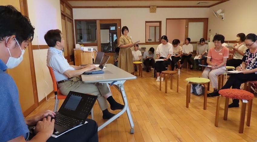 2012年に第1回を開催し、今年で13回を数えます。今年も、姫路市立八木小学校から教頭先生をはじめ計7名の先生方、太子町立小学校2名、高槻市立小学校1名、岡山県美作町立小学校1名、同美咲町立義務教育学校1名、姫路市教育委員会1名、姫路市役所こども保育課1名、姫路市立こども園2名、私立保育園及びこども園など7名、そして県内の保育士養成校教員4名と学生1名、多岐にわたって多数のご参加がありました。