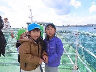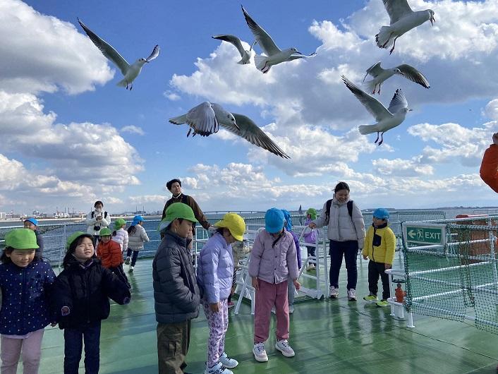 船の上では、風や上下動が怖くて涙が出る児、カモメが怖かった児、甲板を楽しく走り回る児と、みんな自分らしさを出していた。怖がる児には個別に対応した。