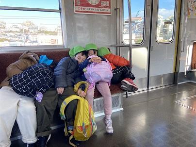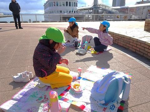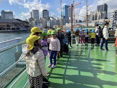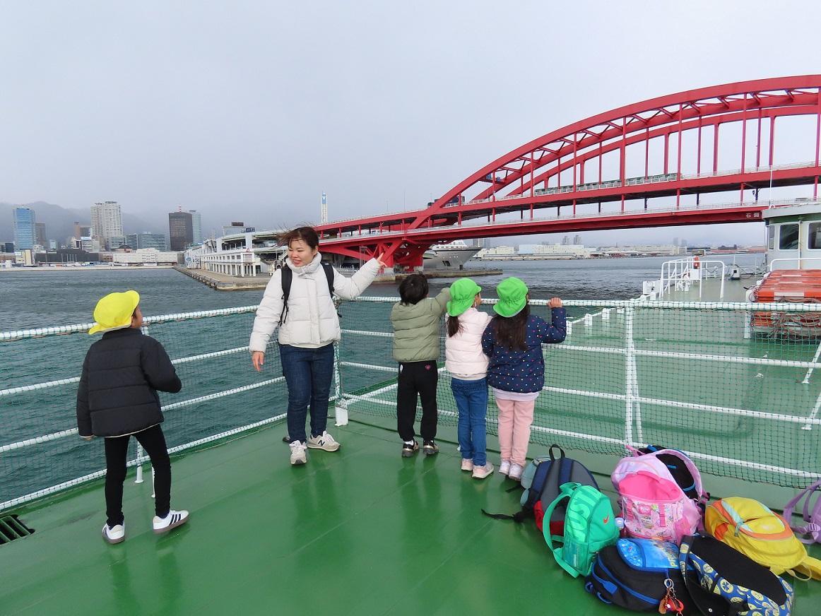 港で船に乗ったときも「今日は楽しいことばっかりや!」と声が聞こえた。年長だけの最後の遠足。神戸の町を楽しみ、良い経験になったと思う。帰りの電車では、眠ってしまった児が多かった。
