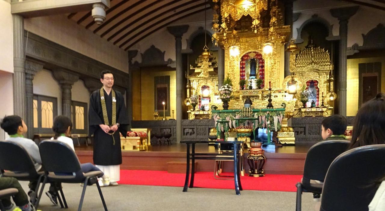 神戸別院が見えると「わー!ここ?」と言う声が聞こえた。中に入ると、正福寺本堂のよりもずっと大きなののさま(仏像)、イスに座ってのおつとめ、立ってするお焼香と、なにもかもが新鮮だったようだ。嬉しそうにする子、反応も様々だった。