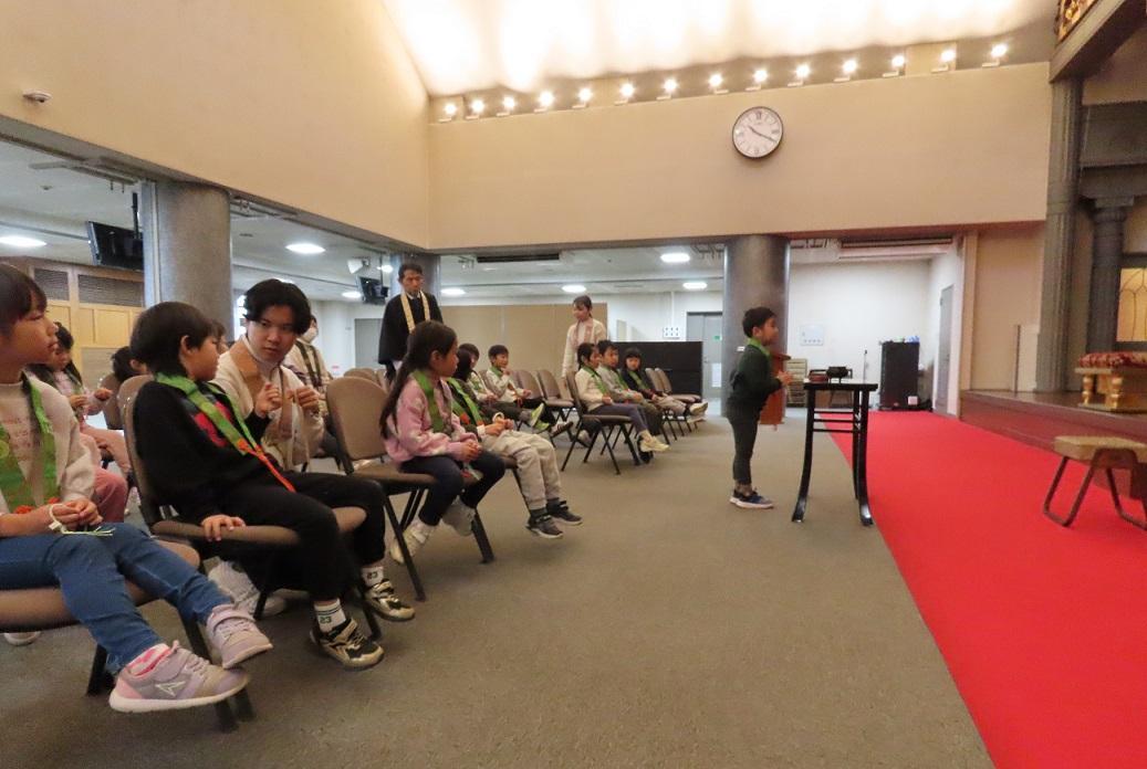 神戸別院でのお焼香は、いつもは座ってするが、今日は立ってすることもあり、とても緊張したようだが、一所懸命な姿が見られた。