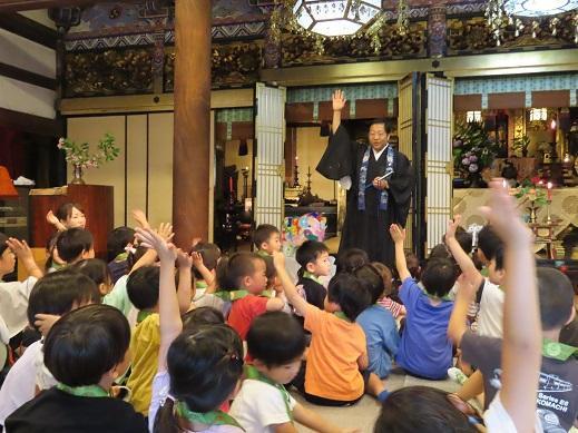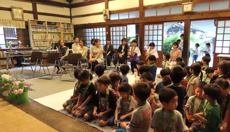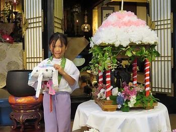 花まつりが終わり、本堂を出て帰園した。年中長児は自由遊びの時間が少なかったが、雨の中一緒に傘をさして歩いていき、興味深いお説教と面白い楽器の演奏を聴くという経験を一緒にしたことで、またクラスの友だちへの仲間意識は深まったように思う。ちょっと疲れたけど楽しかったよね、と思える経験を一緒に出来たことに、大人も達成感と充実感を感じました。 <くま組クラス日誌より>