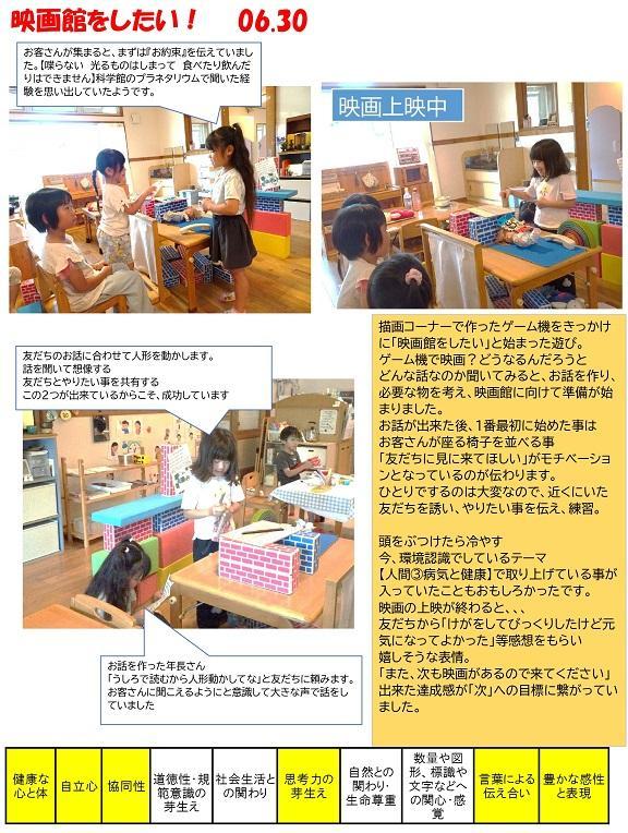 描画コーナーで作ったゲーム機をきっかけに「映画館をしたい」と始まった遊び。
