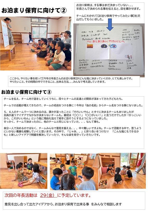 普段は違うクラスで生活している友達との結束力がお泊り保育までに深まっていければ!!と思います。