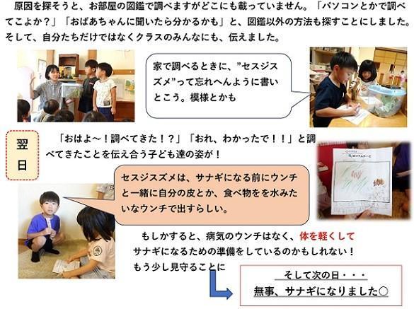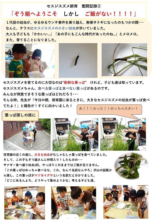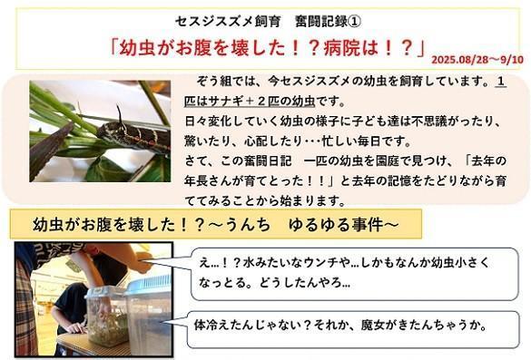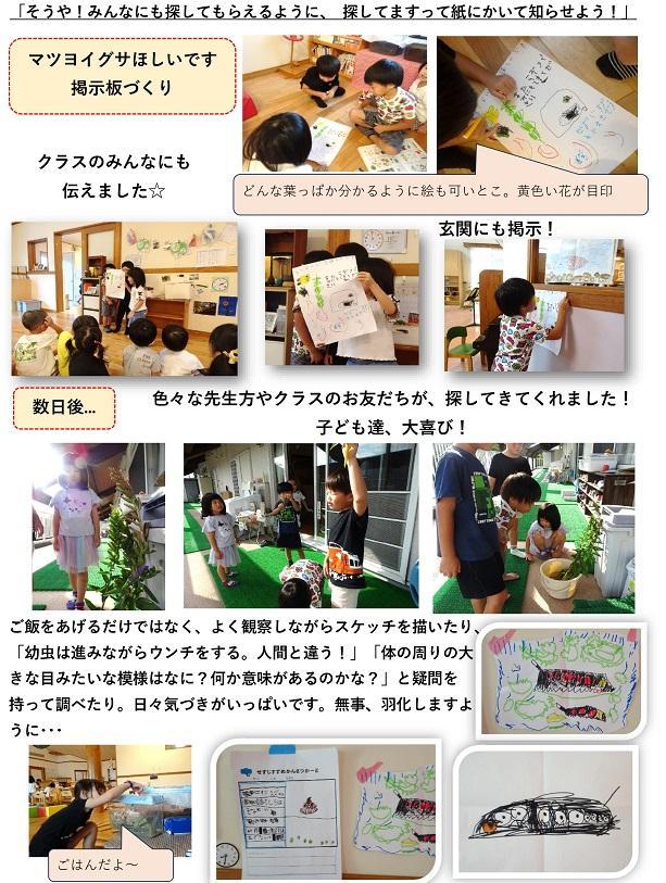 日々変化していく幼虫の様子に子ども達は不思議がったり、驚いたり、心配したり・・・忙しい毎日です。