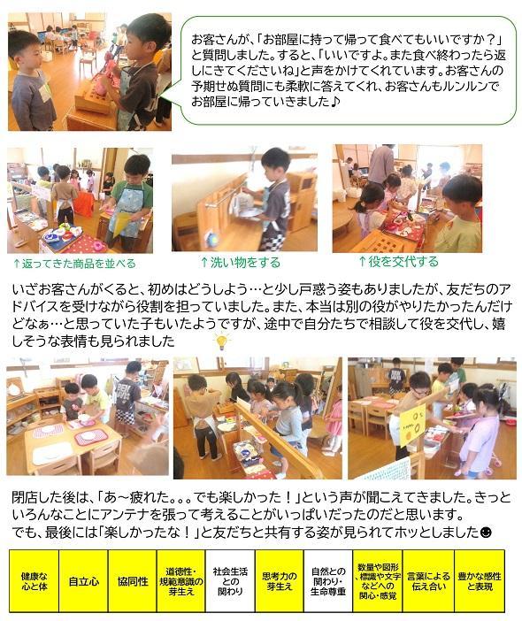 いざお客さんがくると、初めはどうしよう…と少し戸惑う姿もありましたが、友だちのアドバイスを受けながら役割を担っていました。また、本当は別の役がやりたかったんだけどなぁ…と思っていた子もいたようですが、途中で自分たちで相談して役を交代し、嬉しそうな表情も見られました。