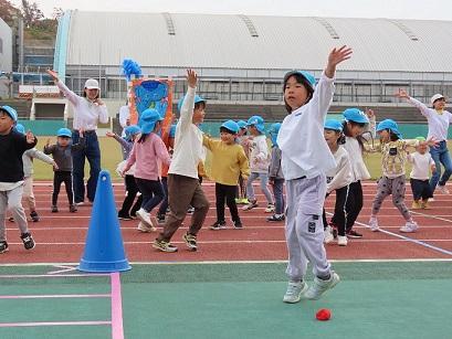 勝敗のつく競技は、年長児が絶対に勝ちたい気持ちを前面に表して、その気持ちを友だちと共有する姿もあった。