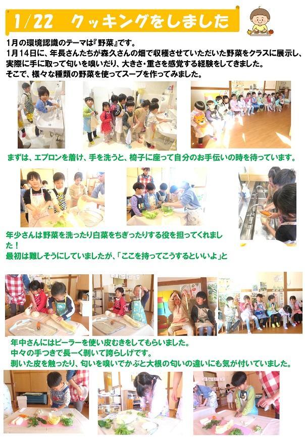 1月14 日に、年長さんたちが森久さんの畑で収穫させていただいた野菜をクラスに展示し、実際に手に取って匂いを嗅いだり、大きさ・重さを感覚する経験をしてきました。