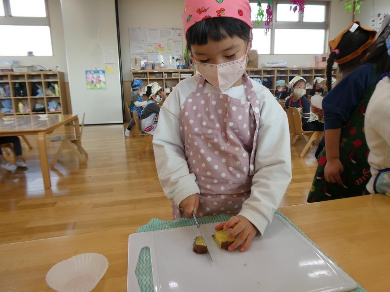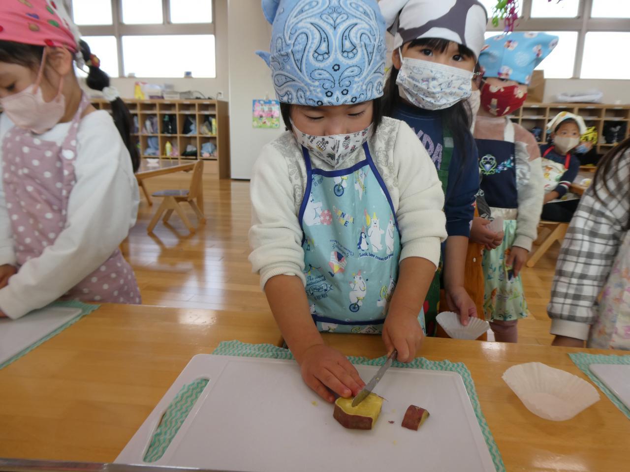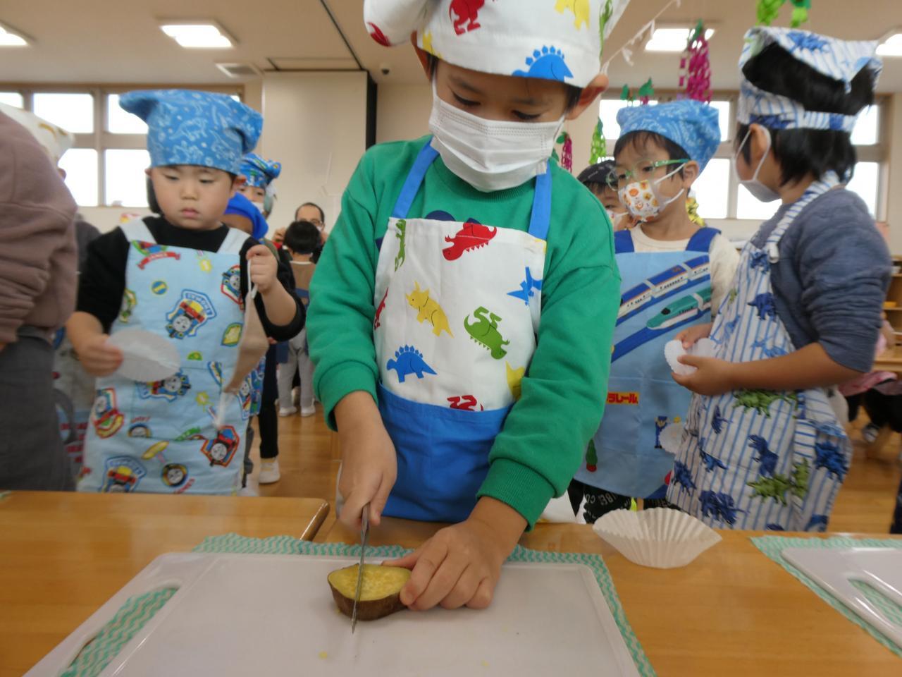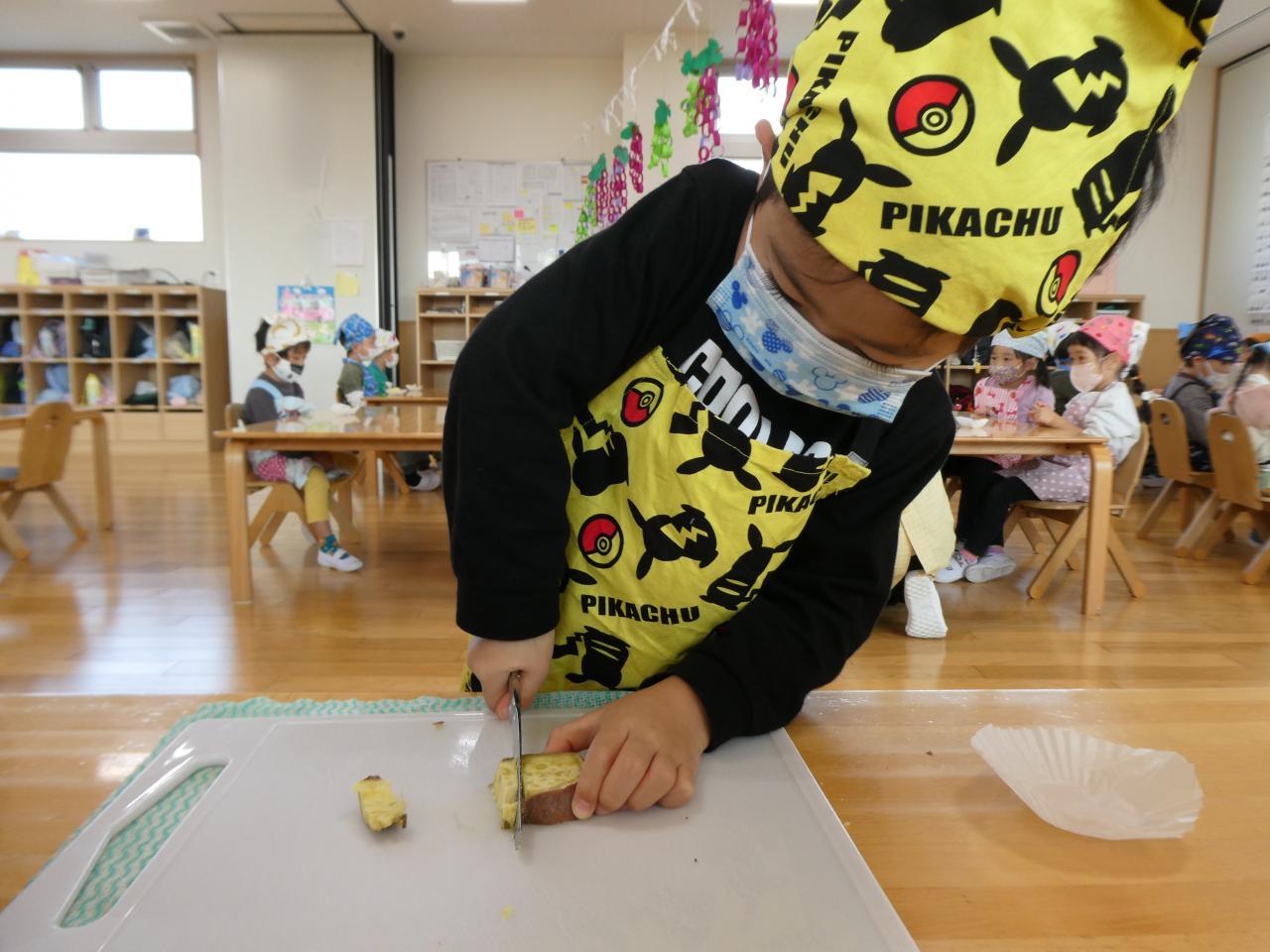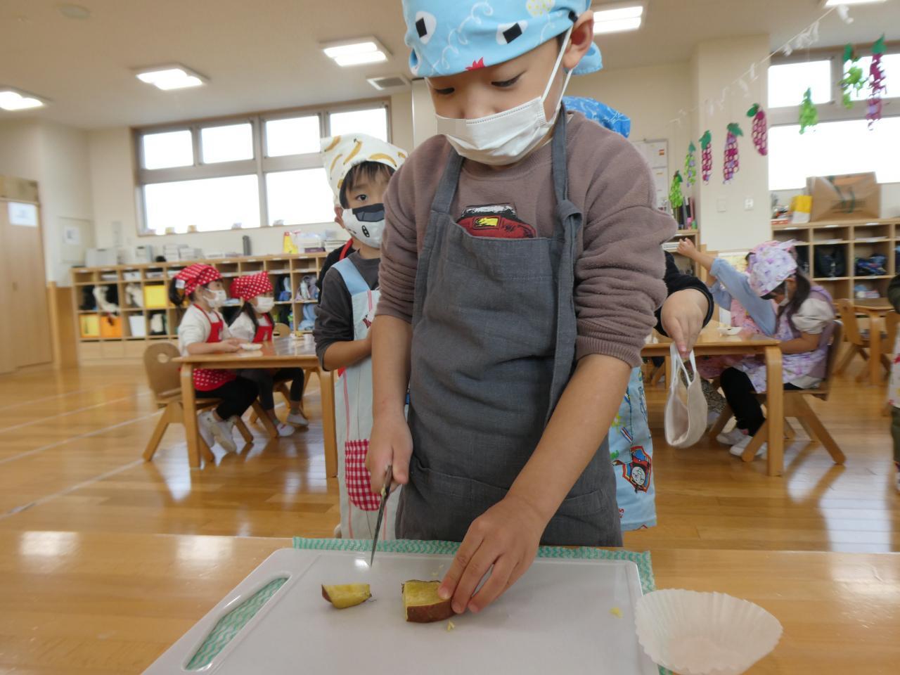 今日は、芋ほりでみんなが掘ったさつまいもを使ってクッキングをしました!