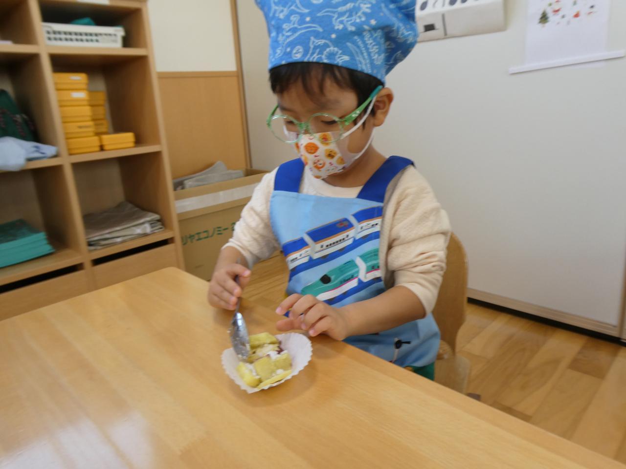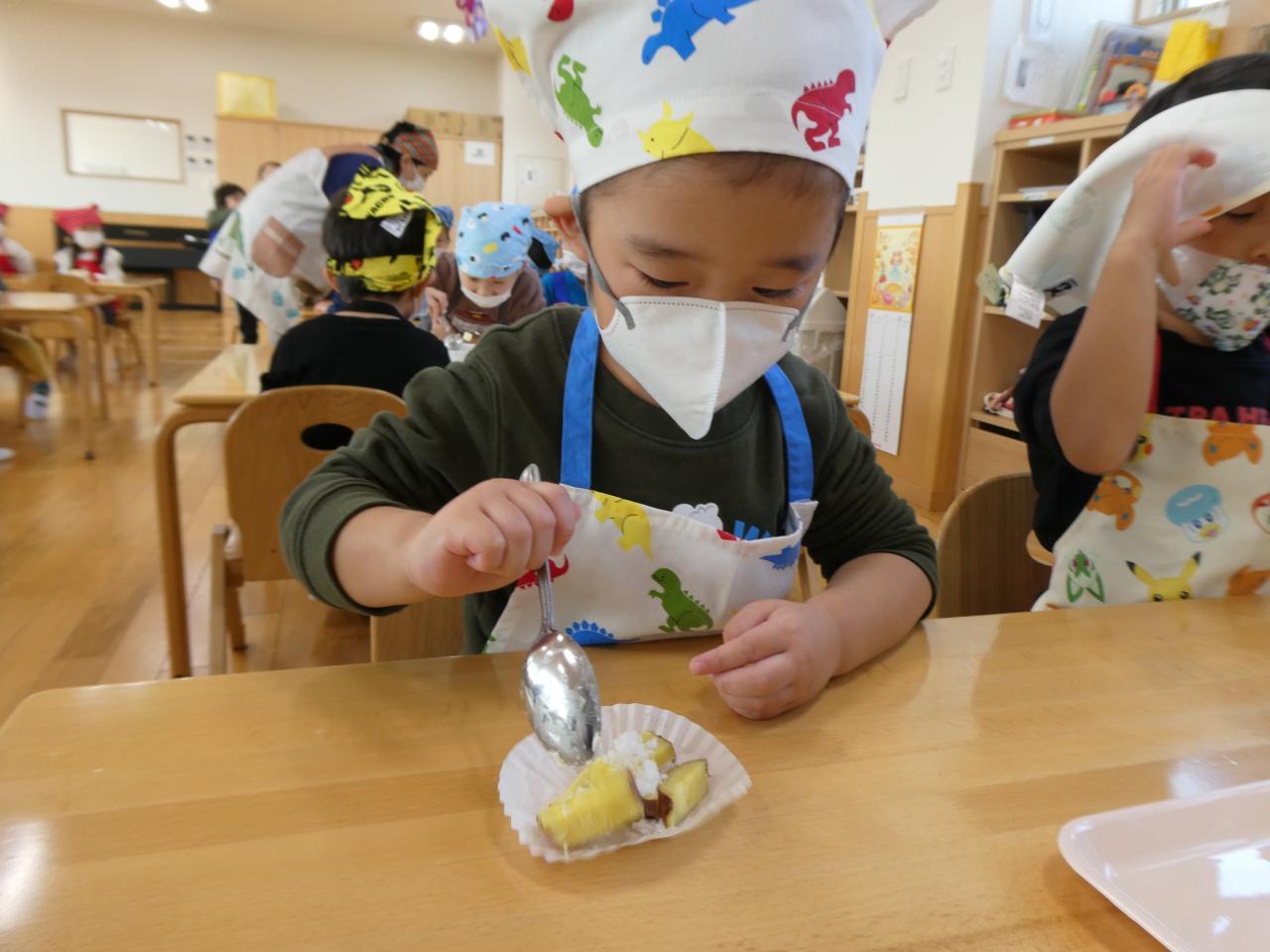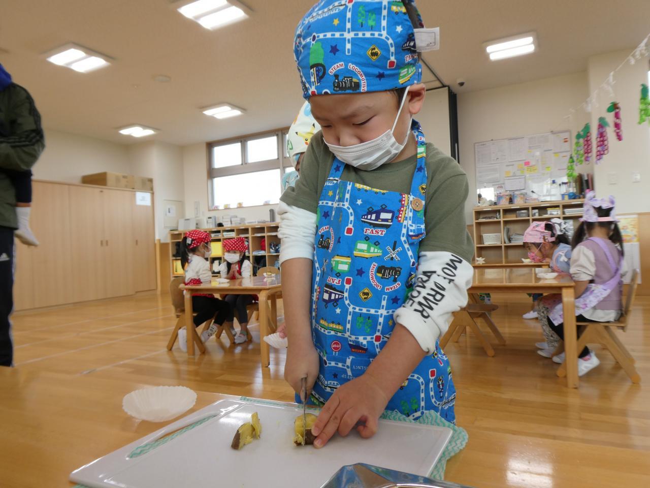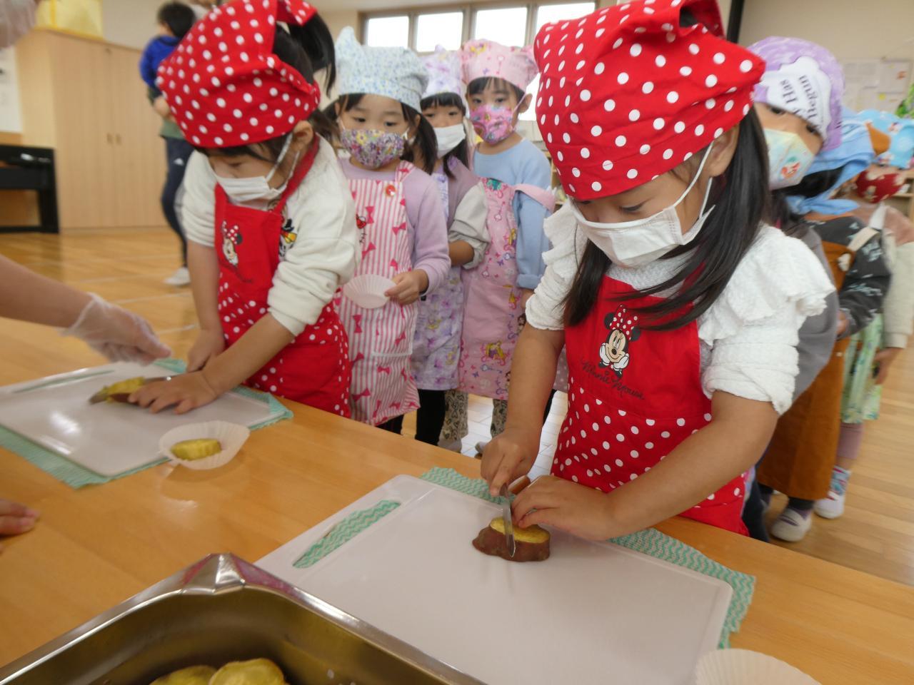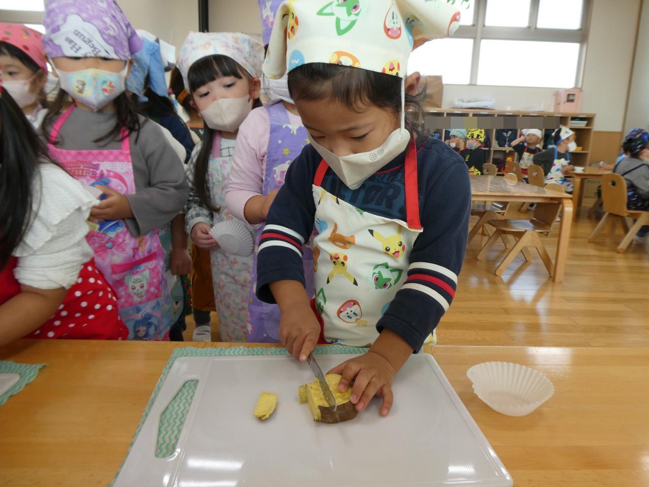 今日は、芋ほりでみんなが掘ったさつまいもを使ってクッキングをしました!