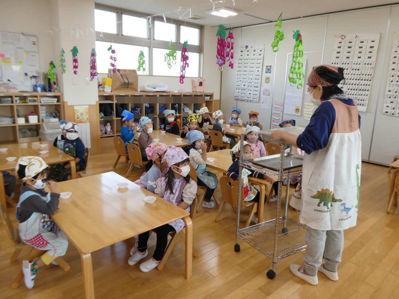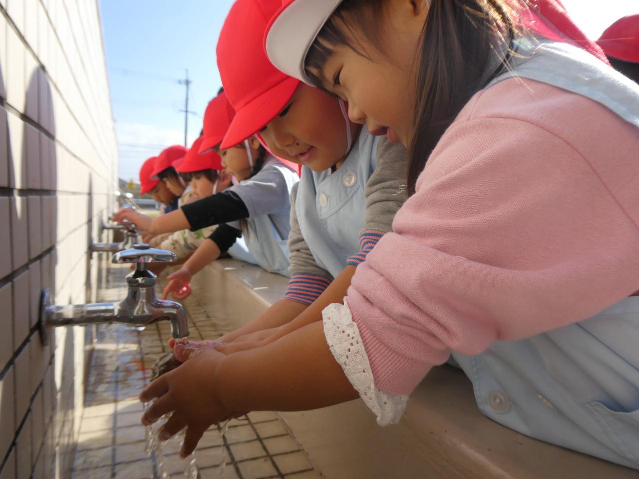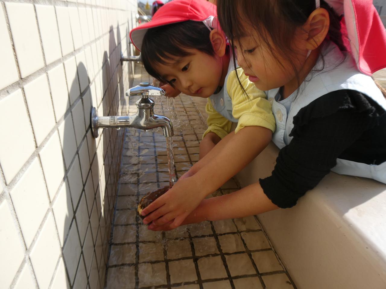 前日にはさつまいもを洗い、給食室の先生に「よろしくおねがいします!」と伝えに行きました😄