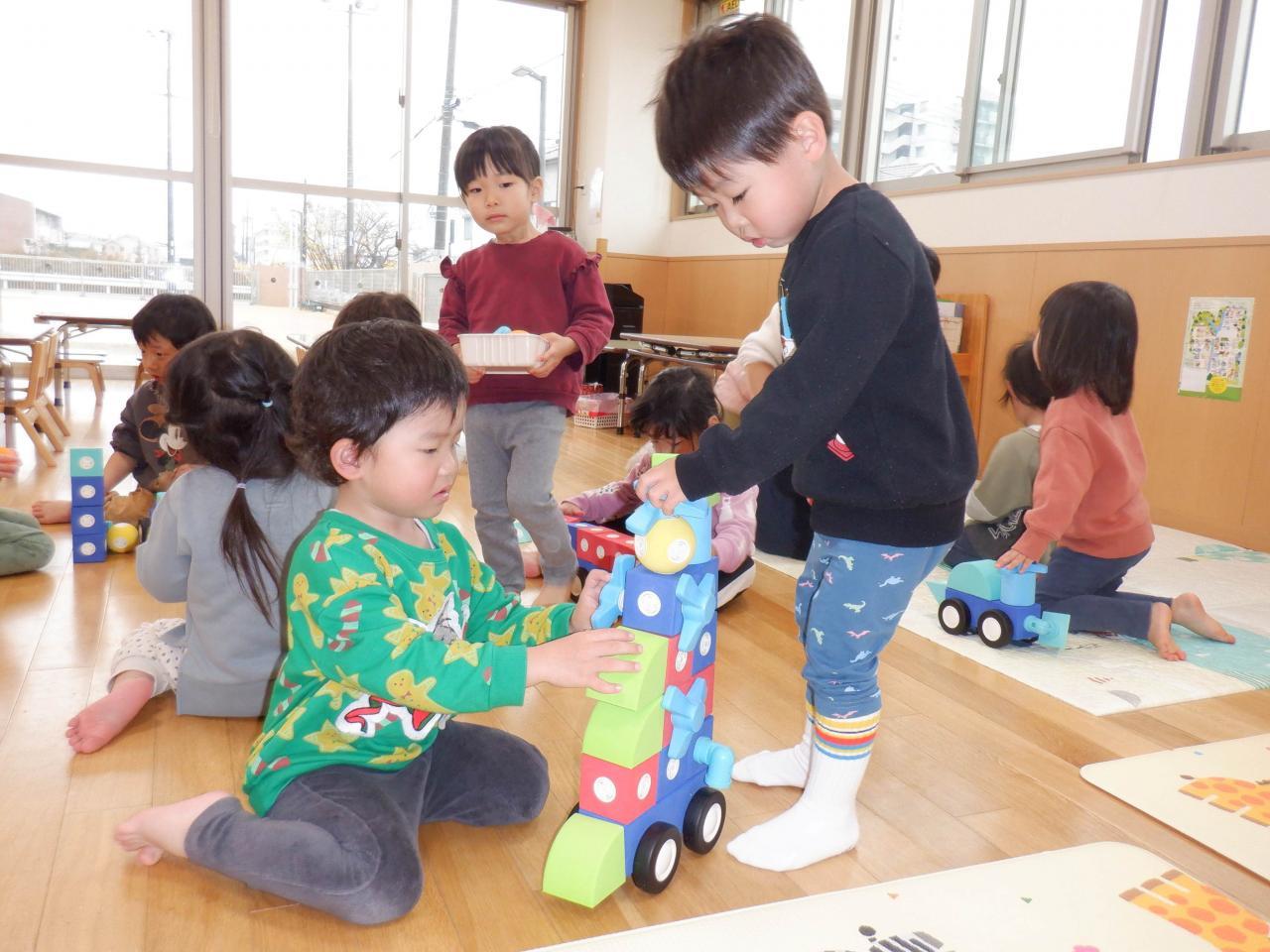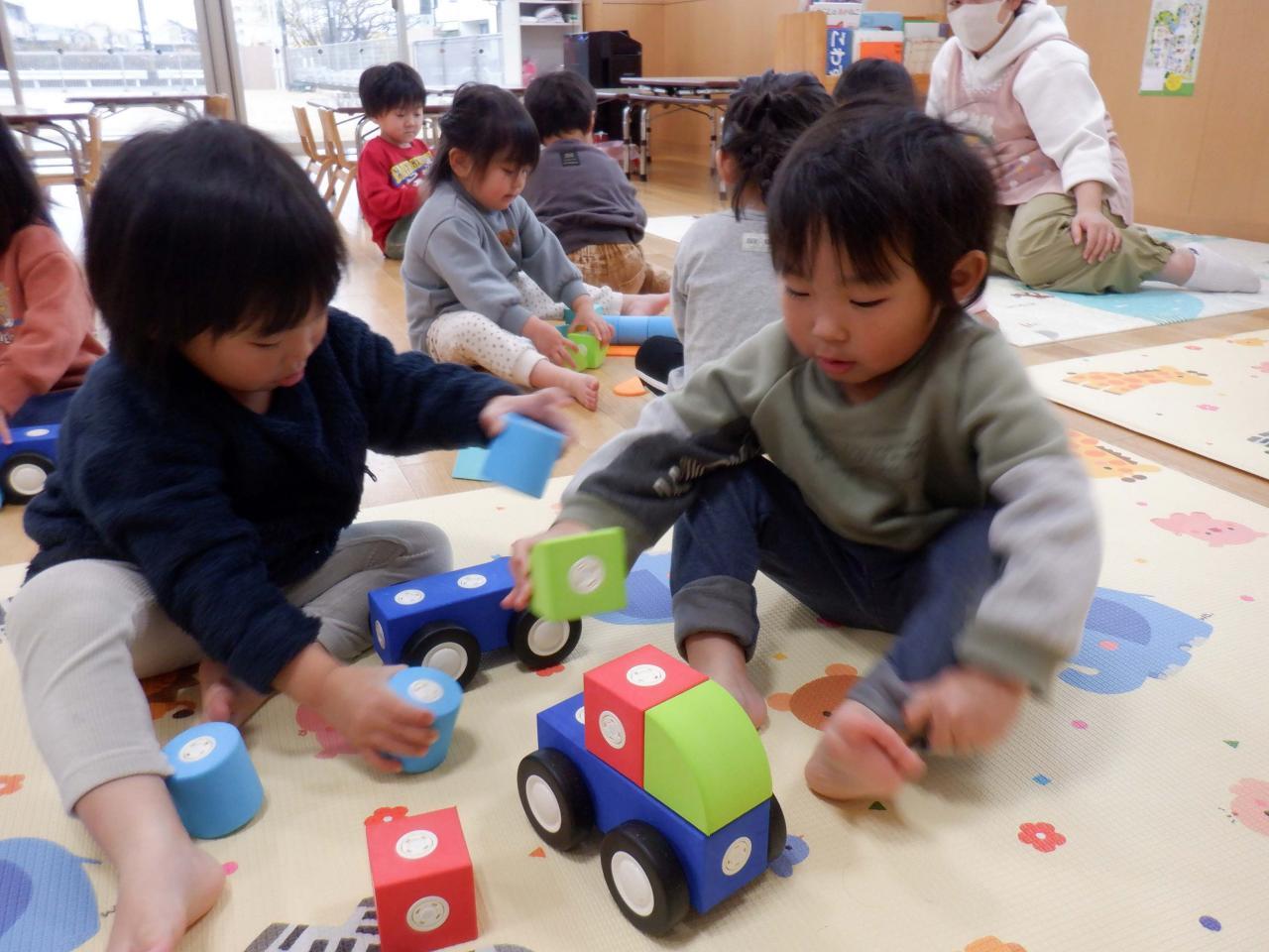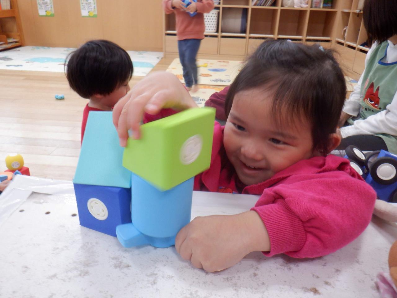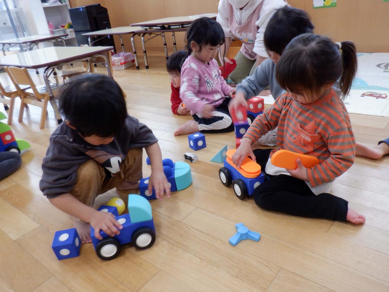 新しい玩具に大喜びでたくさん遊びました!遊んでいる中で友だちと協力しながら組立てていく子もいましたよ!