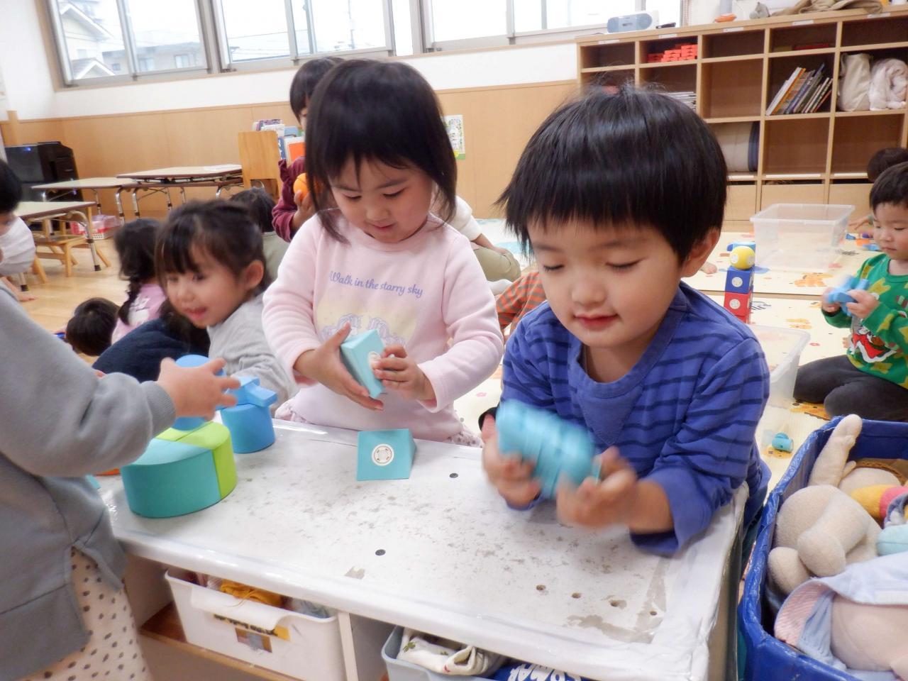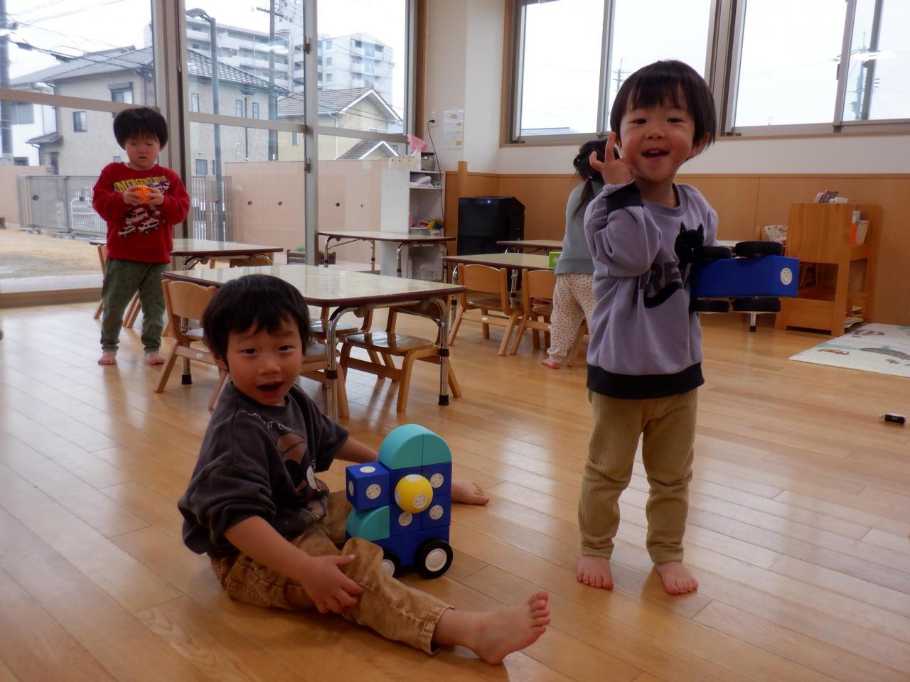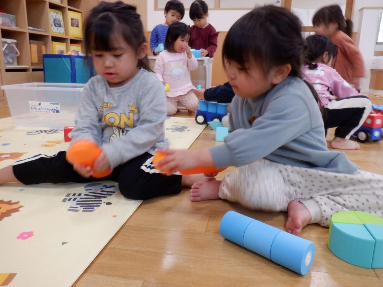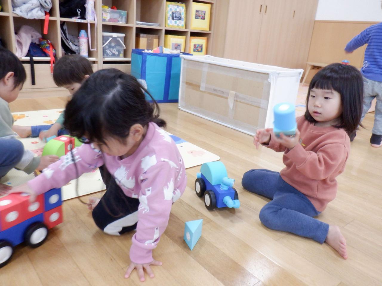 新しい玩具に大喜びでたくさん遊びました!遊んでいる中で友だちと協力しながら組立てていく子もいましたよ!