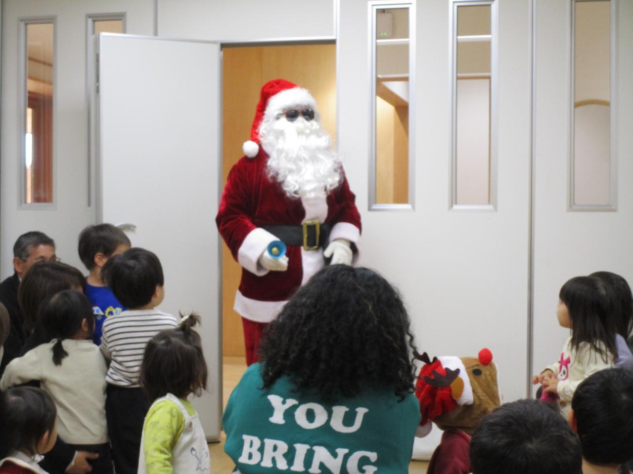 突然のサンタさんにびっくりして固まる子や泣き出す子、手を振る子など様子は様々でした。