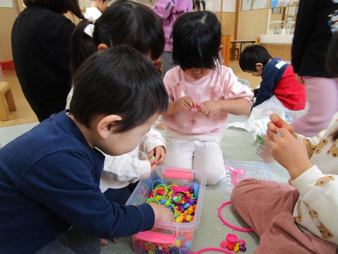 いつもはとっても賑やかなもも組さんですが、プレゼントに夢中で静かにそれぞれの遊びを楽しむ子ども達なのでした。