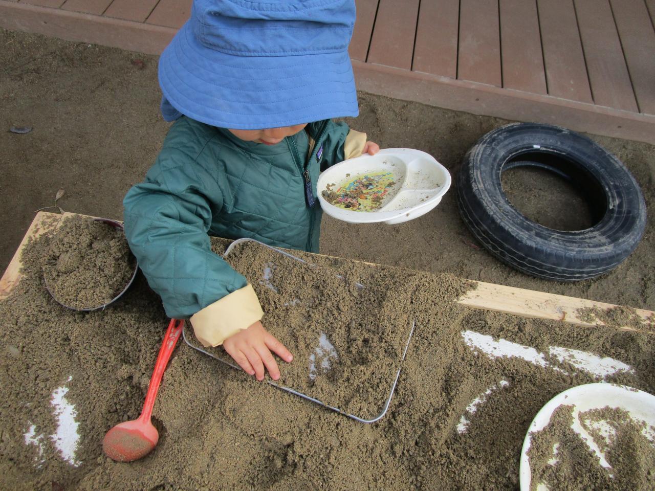 もちろん今までの広い砂場は、幼児クラスのお兄ちゃんお姉ちゃんたちが山を作ったり、大きな穴を掘ったりとダイナミックな砂遊びに大活躍中!